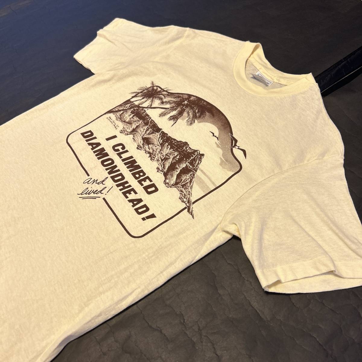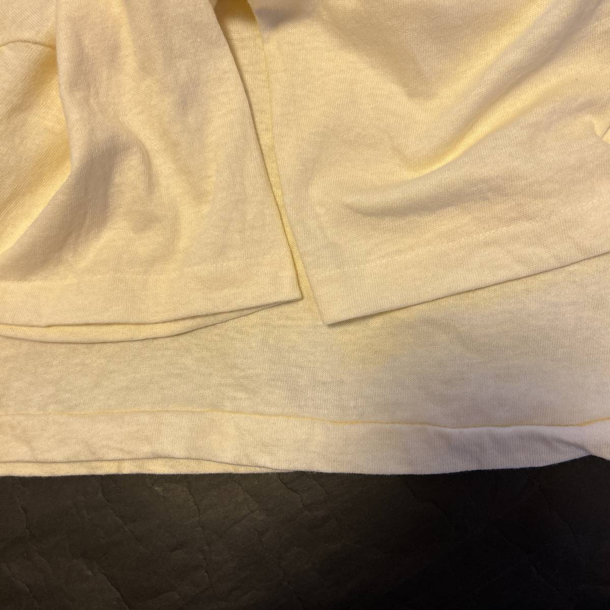 オークションをご覧いただきありがとうございます。アメリカで購入しました80年代のヘインズTシャツです。通称青タグと呼ばれているモデルです。アメリカ製でサイズはMです。実寸は着丈66センチ、身幅45センチ、肩幅43センチです。カラーは生成色で材質はコットン100%です。状態は特にこれと言ったダメージはありません。