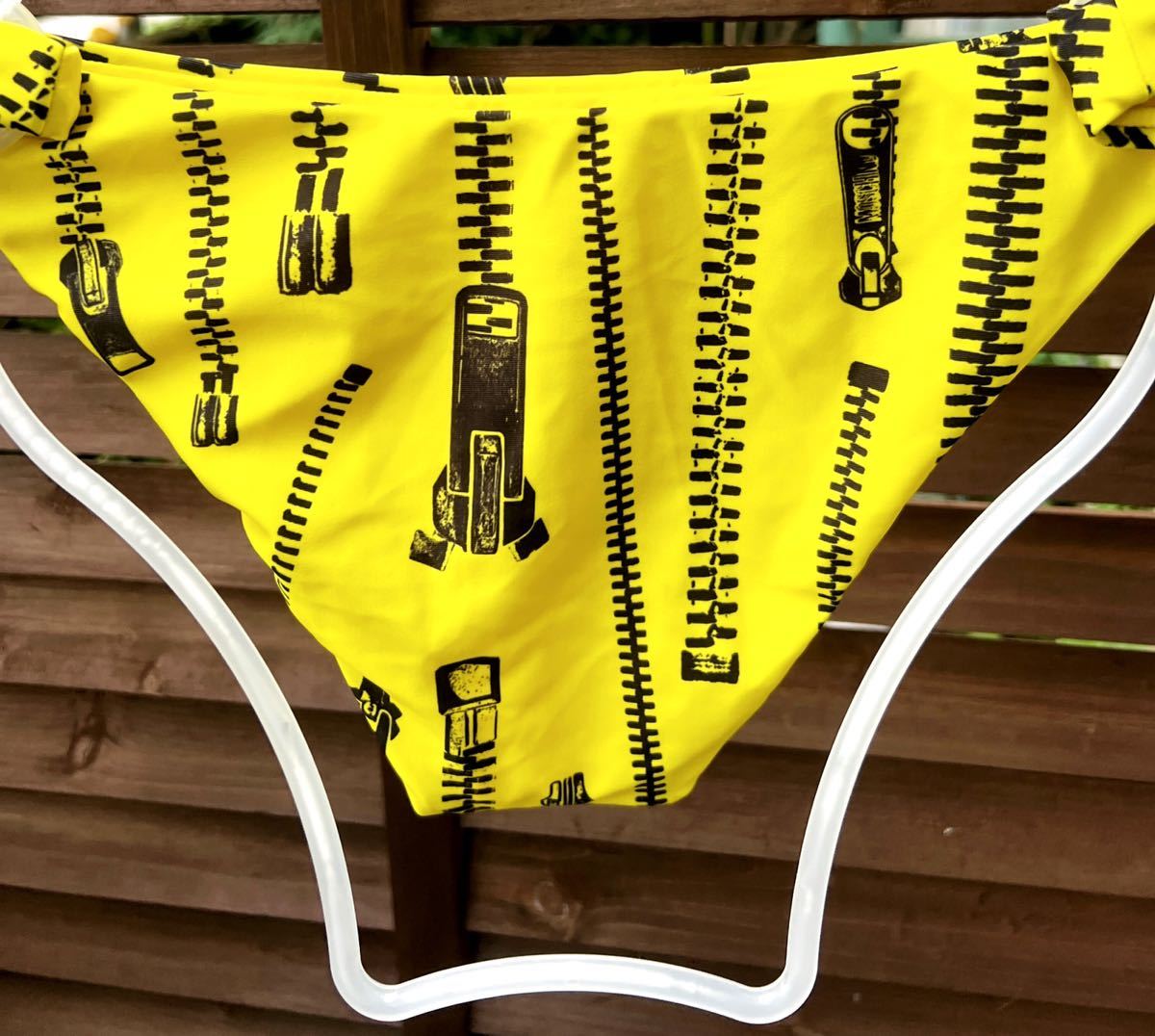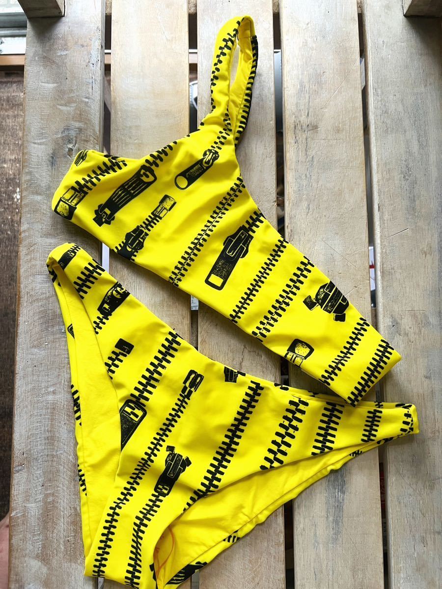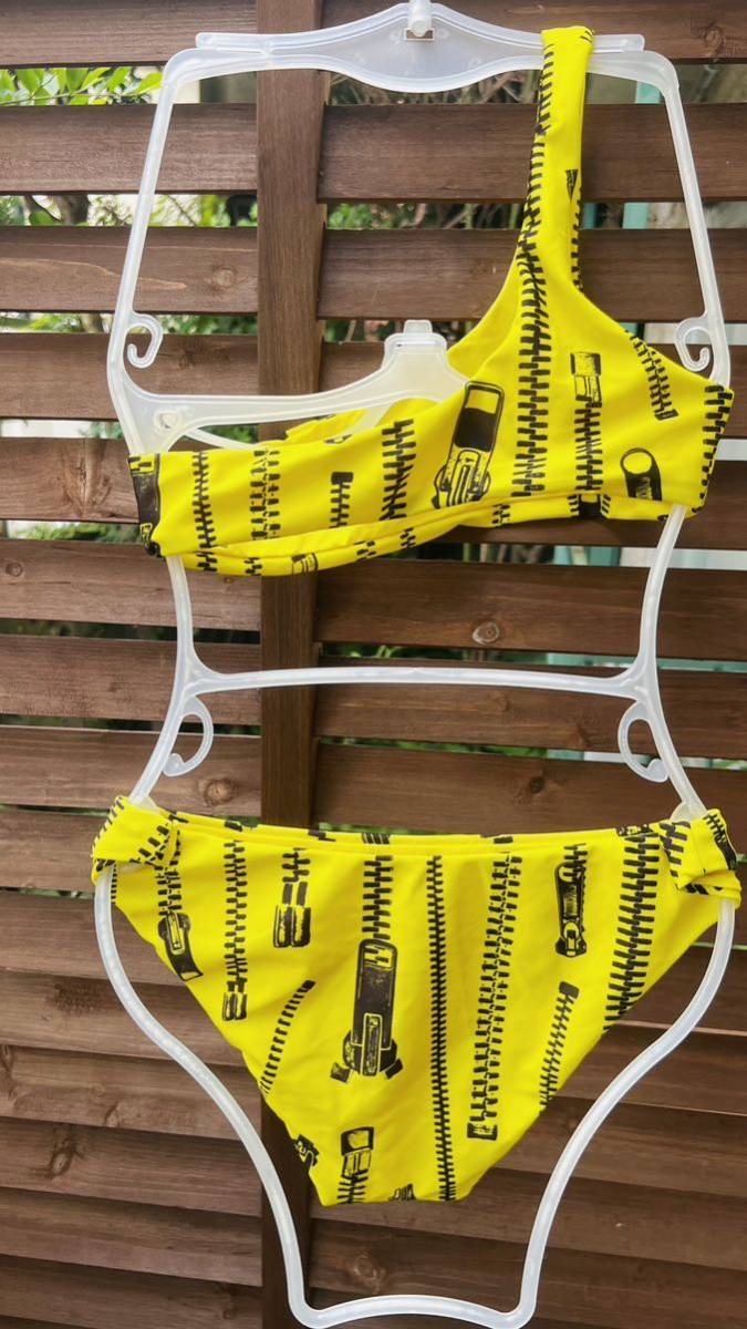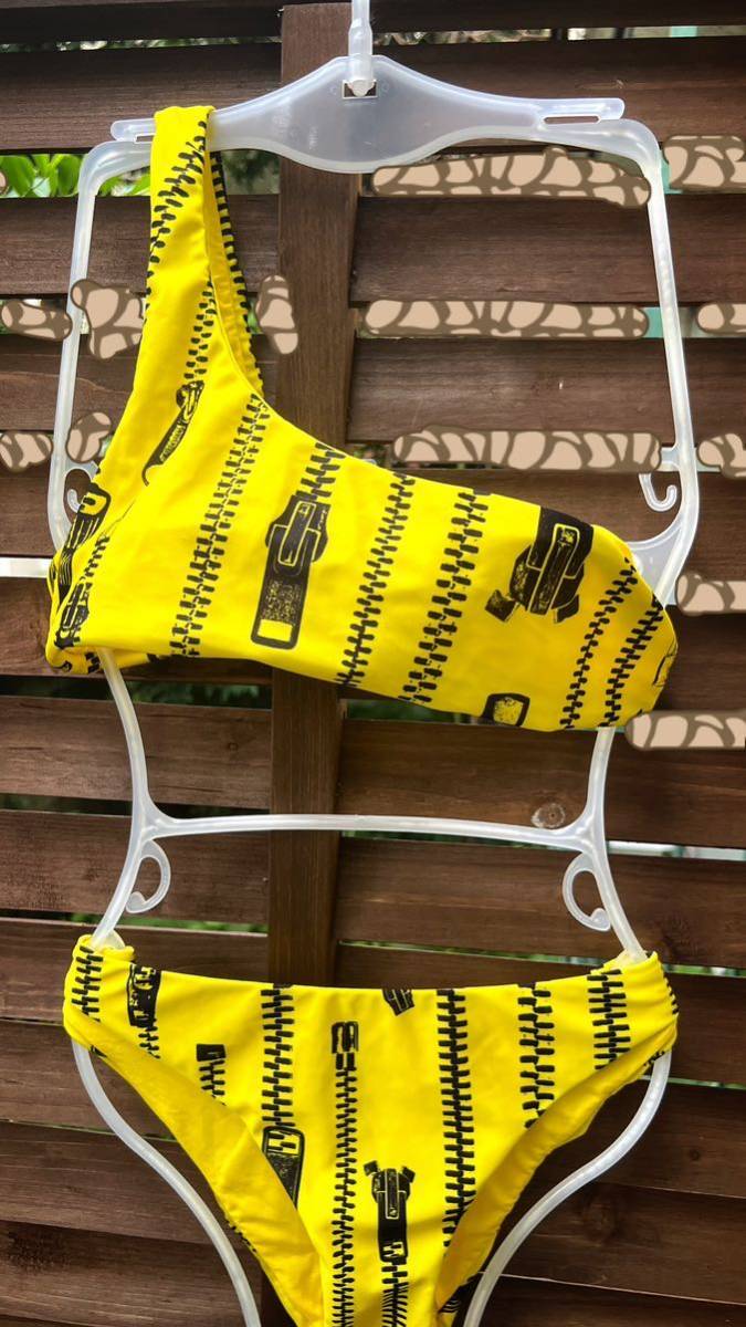 新品モスキーノ MOSCHINO★ジップ柄ワンショルダービキニ 水着トップスS ビキニS 日本参考サイズM スイムウエア