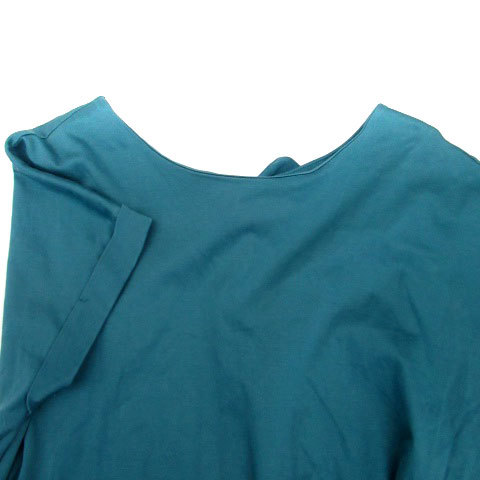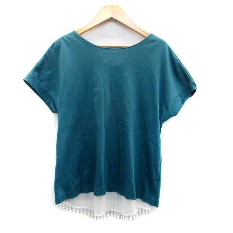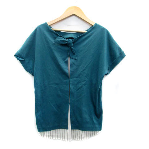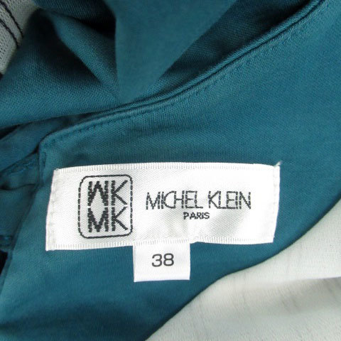 MK ミッシェルクラン カットソー ラウンドネック 半袖 ロールアップ ストライプ柄 切替 38 青緑 ブルーグリーン オフホワイト レディース
