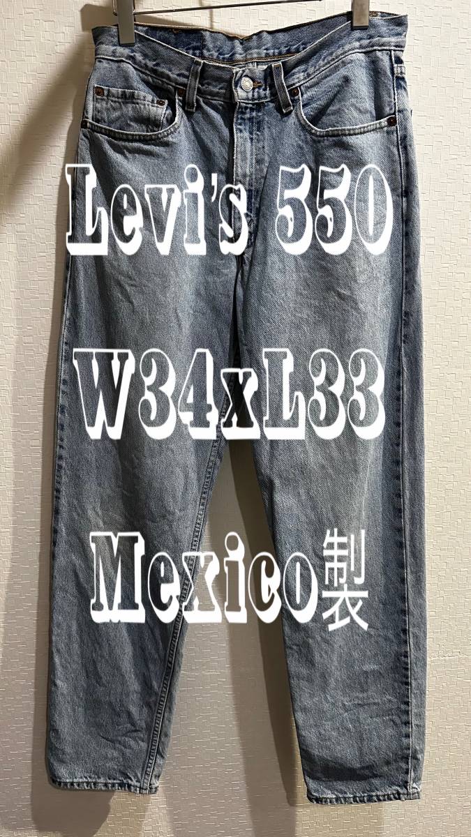 人気 Levi’s 550 リーバイス550 アイスブルーデニム W34x33 Mexico ゆるダボ系 アメカジ スケーター USA古着