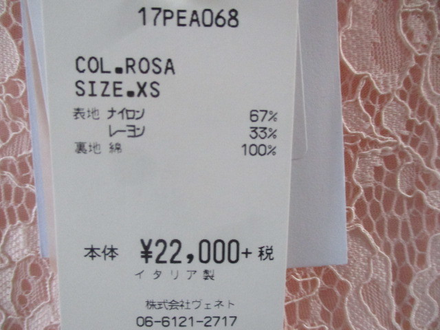 D863/未使用 ANIMA GEMELLA XSサイズ レース パンツ ピンク イタリア製 定価22000円