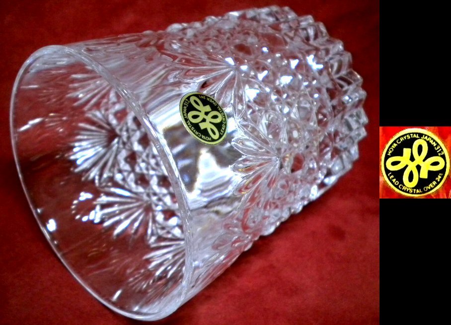 売切 アンティーク HOYA クリスタル オンザ ロックグラス グラス 大 容量:330cc 1客 纏購入特典有 日本製 未使用保管品 箱無 H/M、底16菊紋 寸法:φ上82/下76×H98mm、重量:380g、口元:1.9mm、底厚さ:10mm、1980年代、大きめで重量感があり煌びやかなカットのお品です。当時の押し出し成形品のため良品範囲の微細なガラス流れが御座います。アンティーク品をご理解いただき当時の製造技術で製造され検品を受けた良品範囲のお品ですが現代の規格品とは異なりますので、ご了解いただける方の御落札をお願いいたします。(軽微な型筋やしわは当時良品範囲です)・纏め購入特典:2点以上(他の商品可)纏めて購入頂ける場合、オークション出品の場合、ご希望の商品にご入札いただければ早期終了させて頂きます。質問からか、すでに御落札頂いている場合は取引連絡からご連絡ください。ご連絡頂き24時間以内のご入札が対象となります。表示金額で購入が出来、終了時間までの時間短縮になります。是非ご利用ください。・未使用品ですが長期保管品です。了解して購入される方へ。・HOYAのクリスタル製品は1945年に日本で誕生し、世界で高い評価を受けてきました。 光学技術を導入して作られるクリスタルガラスは、 その高い透明度と輝きで世界のトップクラスを誇り、デザイン性も高く評価されています。HOYAクリスタル事業は2009年3月をもちまして終了しておりますので、今後は新品の入手が難しくなる稀少なお品です。又、検品の為にぬるま湯で洗浄後、乾燥を行いクリスタルグラス特有の保管時の白化を防ぐために個別ラップを行っております。できる限り良好な状態でお手元に届くよう努めております。・発送は郵パックで御願いいたします。御住所確認後、送料を御連絡させていただきます。まとめ購入の場合、ご予定を取引ナビでご連絡いただければ、お取り置き後、同梱発送いたしますので宜しく御願いいたします。分類121F19 №0387