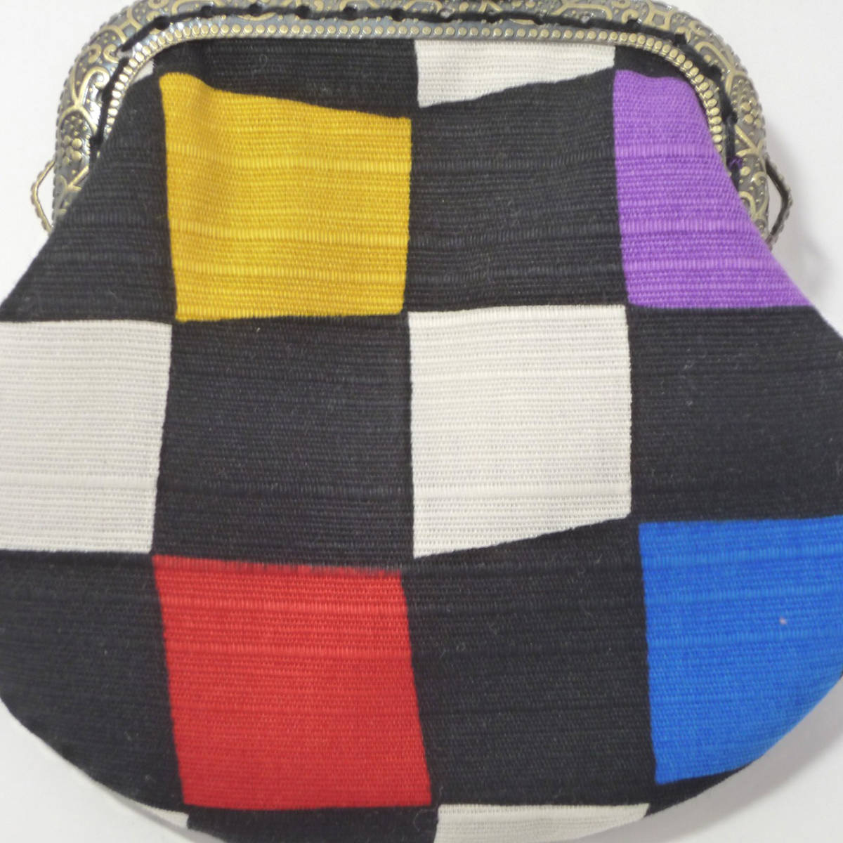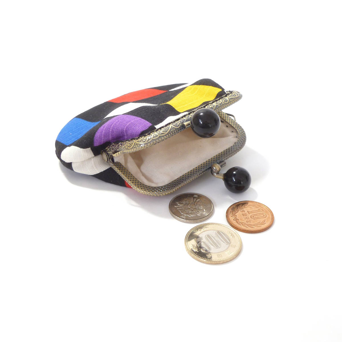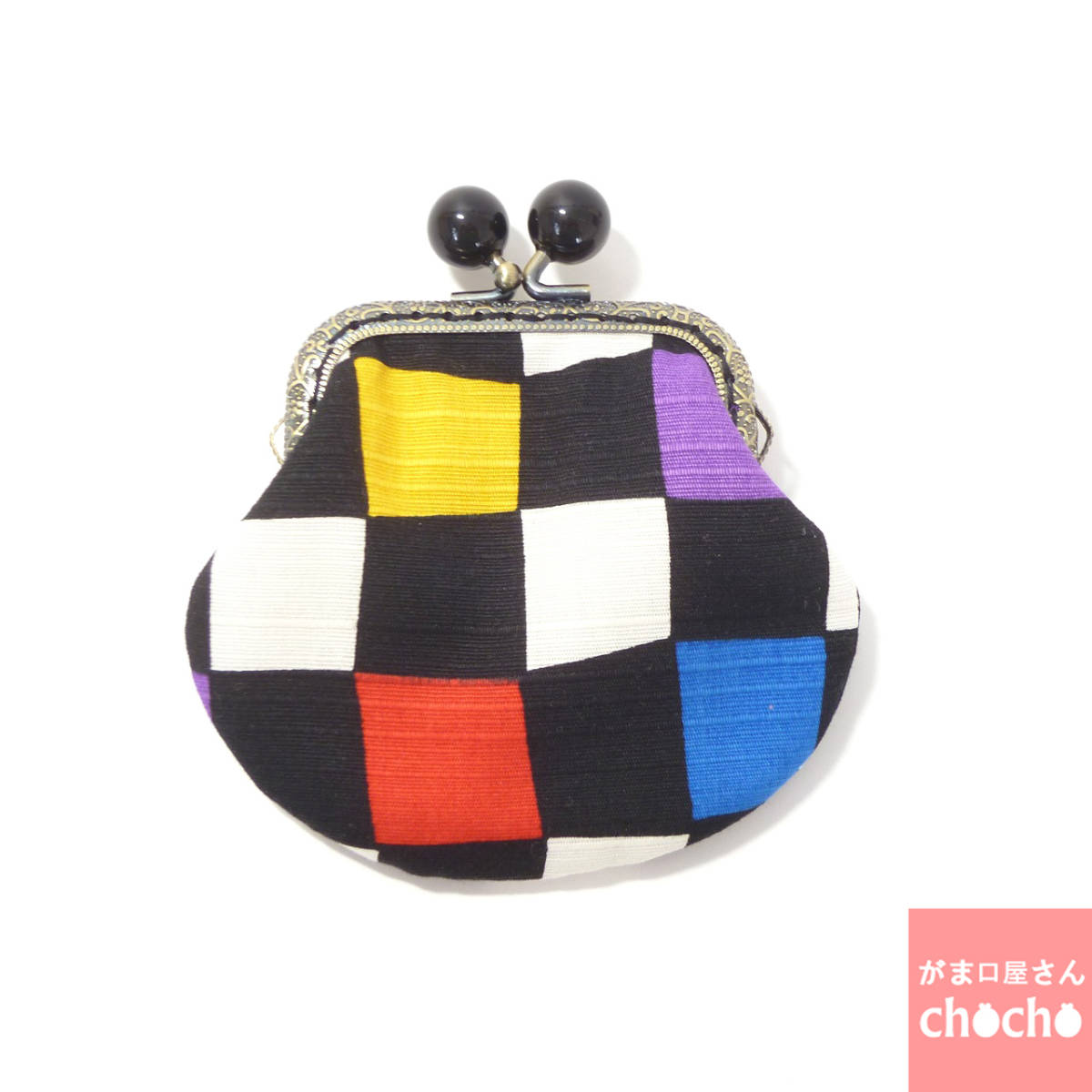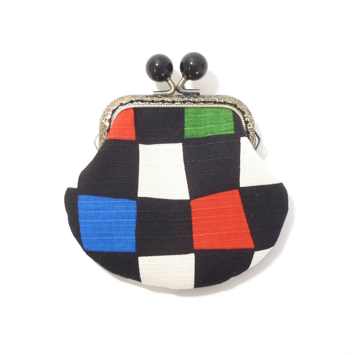 あめ玉 がま口 小銭入れ モダン市松模様 黒 和柄 ハンドメイド G804