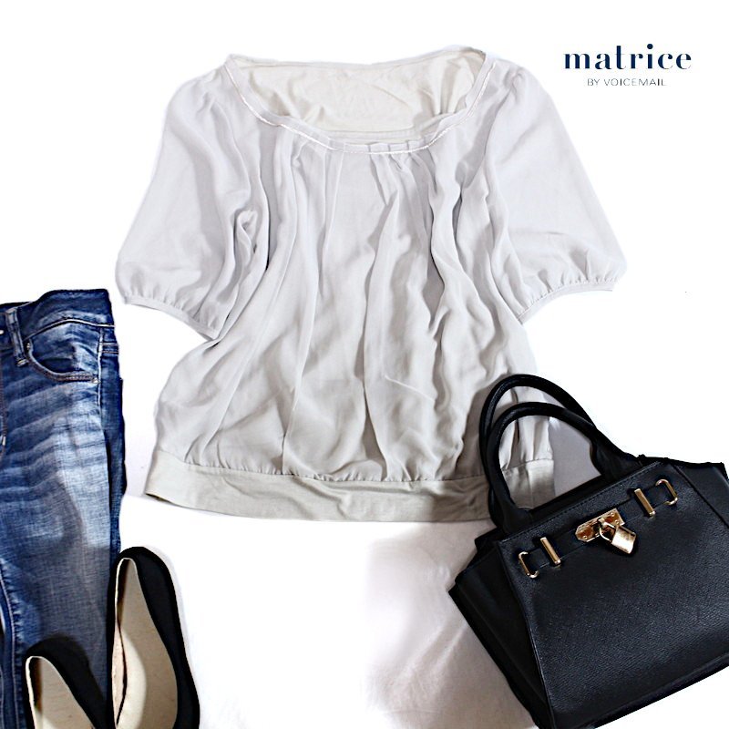 美品 ヴォイスメール matrice BY VOICEMAIL 株)ワールド ■ 上品 夏 半袖 シフォンカットソー 36 7号 グレー ベージュ 清楚 フォーマル