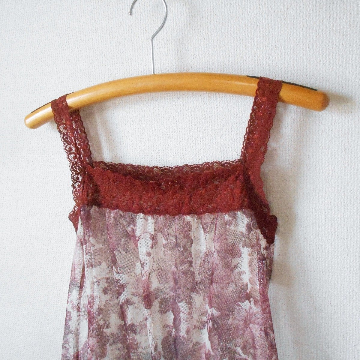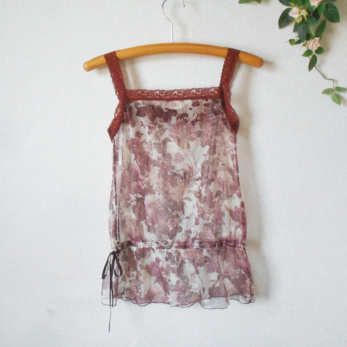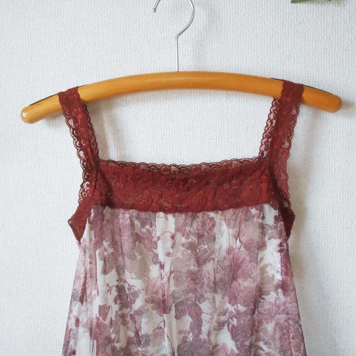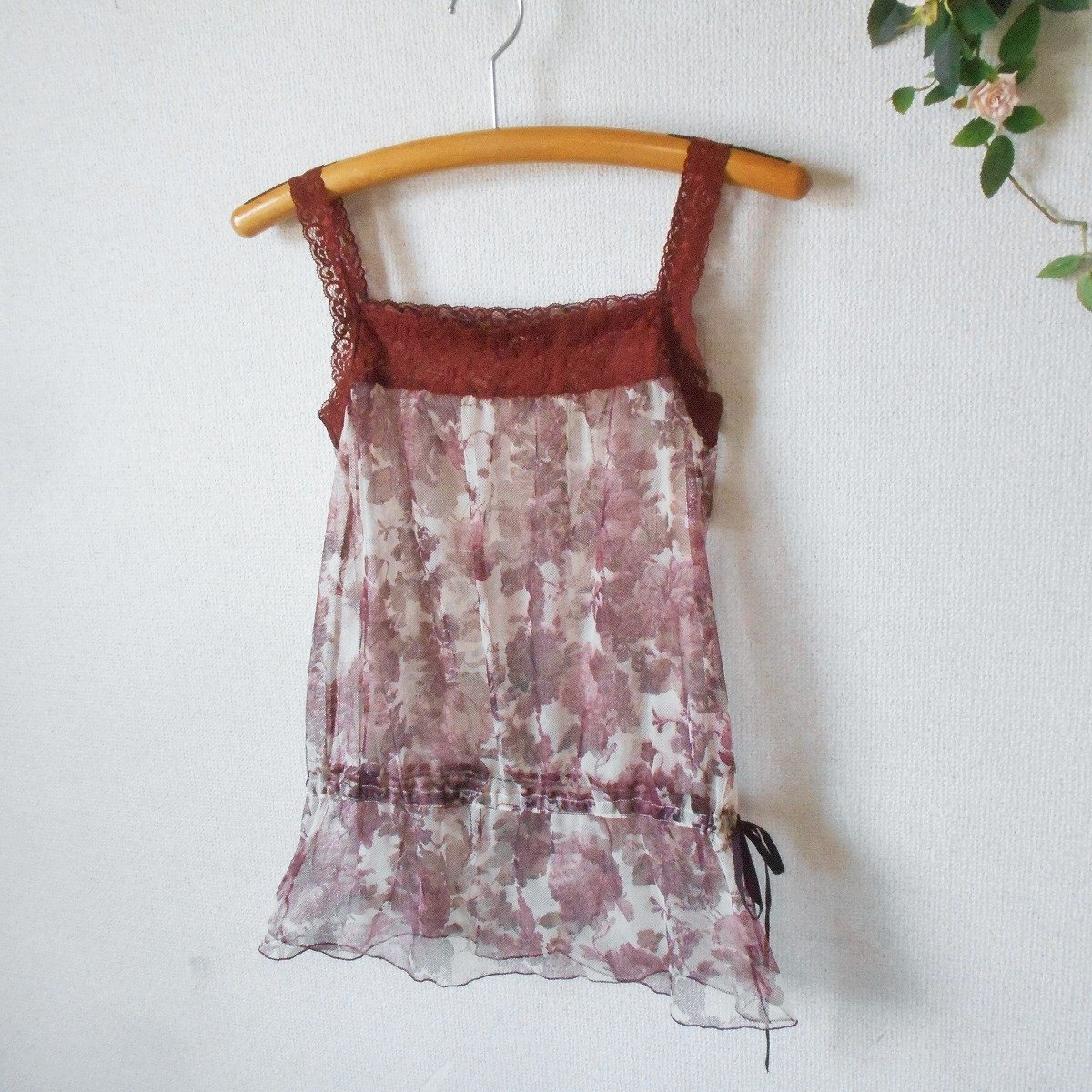 【ポイント】レストローズのキャミソールになります。お色はキナリベースでエンジ色(赤茶系)のお花のプリントが入っています。