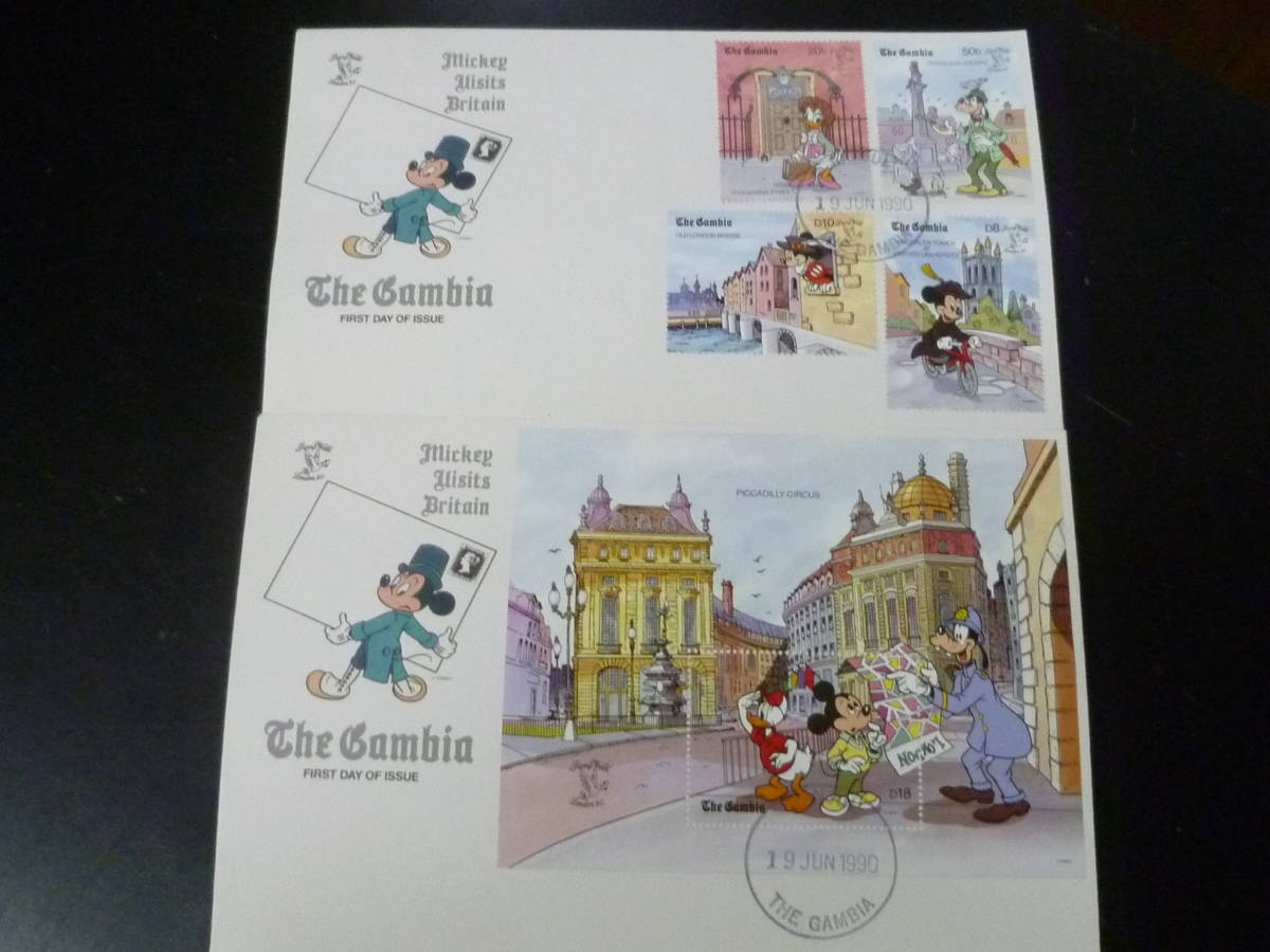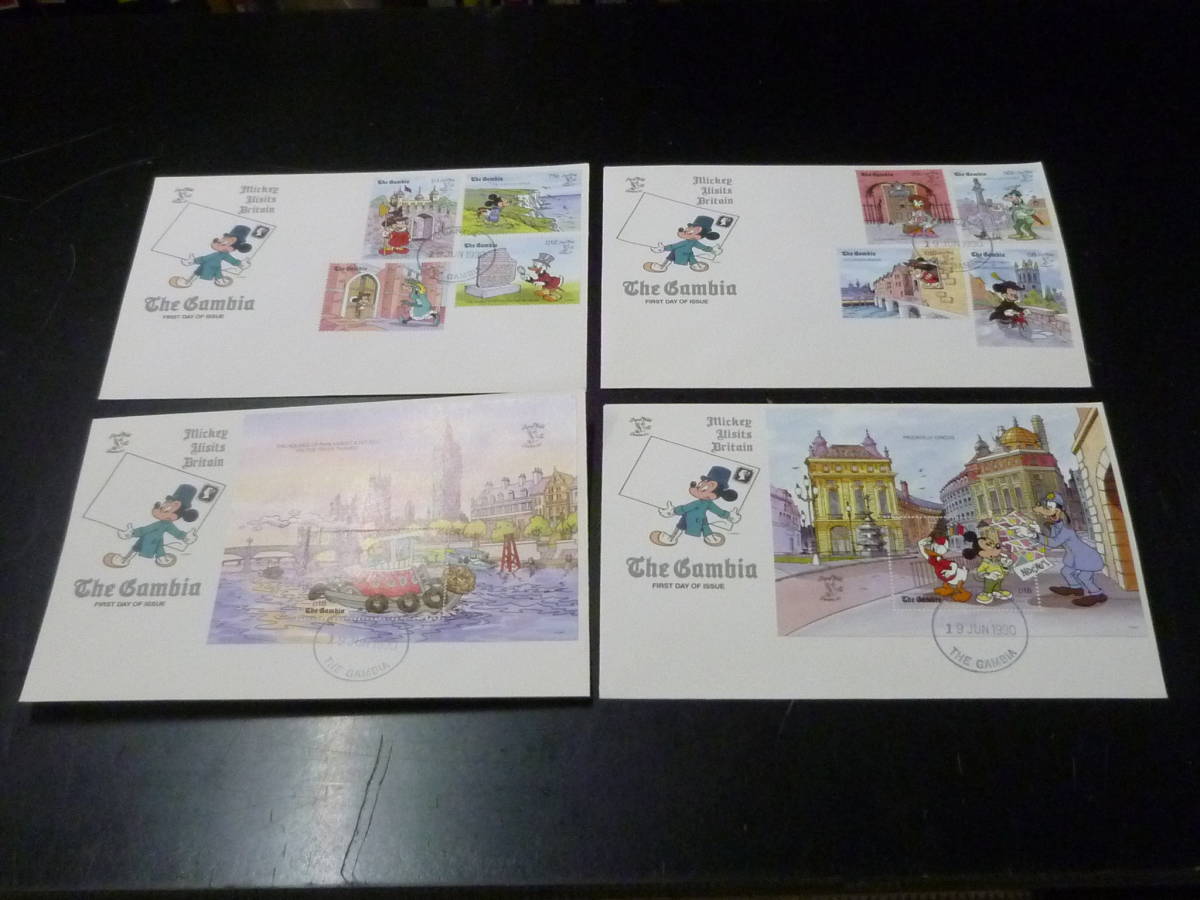 23L A №38 ディズニー切手FDC 1990年 ガンビア ロンドン90年 完揃 計4通