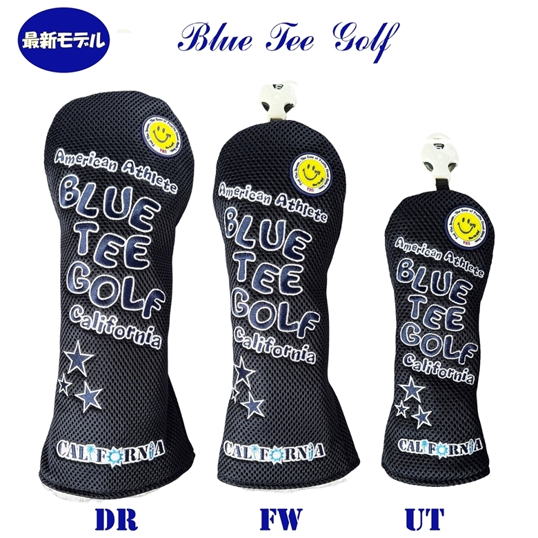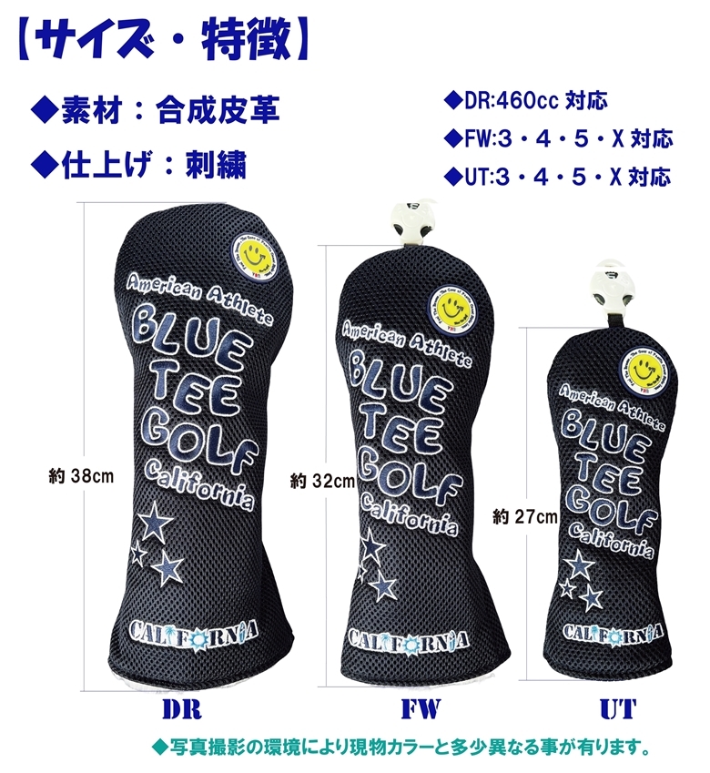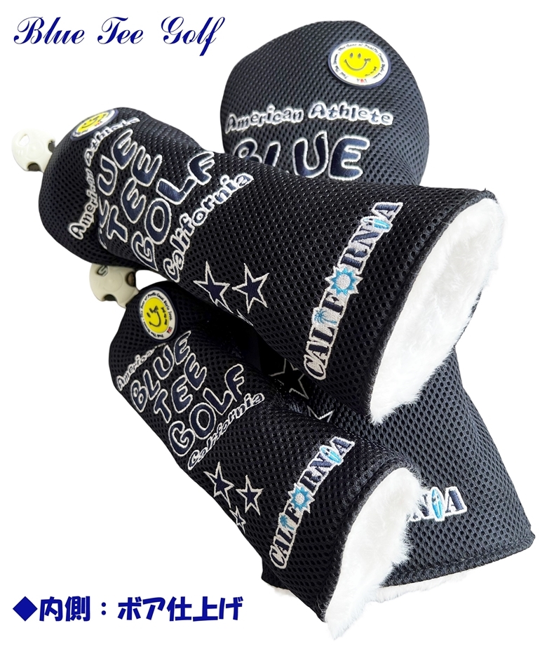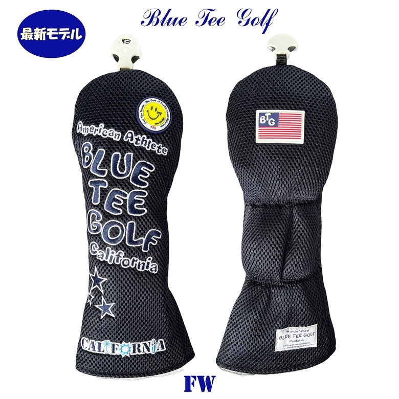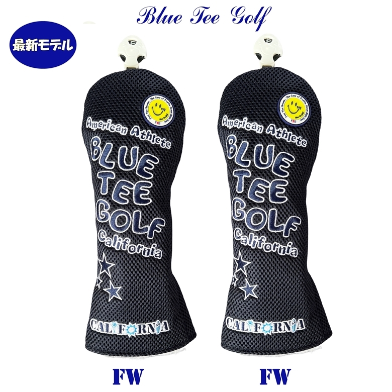 ■2本セット【FWネイビー】ブルーティーゴルフ【メッシュ スマイル】フェアウェイ用ヘッドカバー BLUE TEE GOLF DHC-007 送料無料
