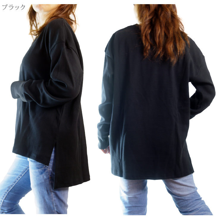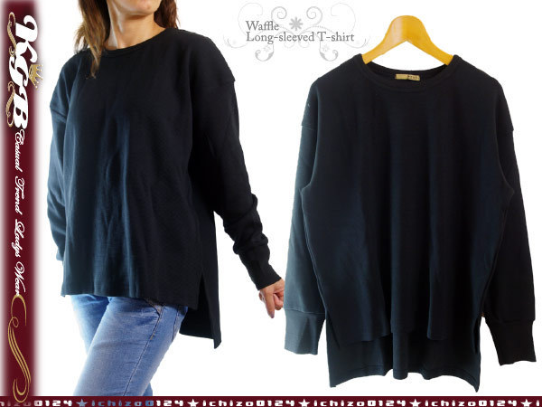 4L~5L ワッフル 丸首 レディース クルーネック ロンT 厚地 長袖 ブラック 新品