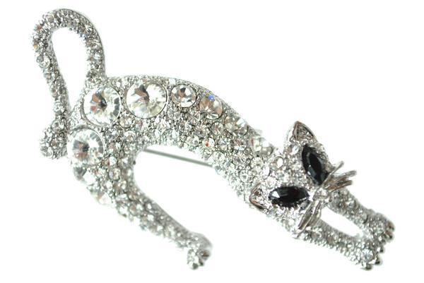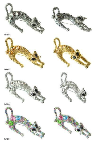 新品*お洒落 きらきら ラインストーン のび ねこ・ネコ・猫・CAT かわいい 人気 ブローチ キルトピン カブトピン アクセサリー 03
