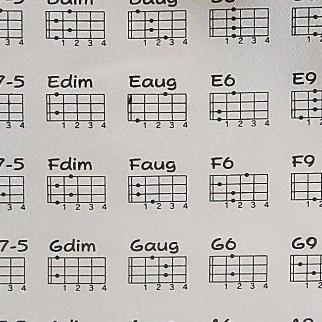 ウクレレのコード表がプリントされているので、ウクレレケースに一緒に収納して持ち運べいざというとき便利!
