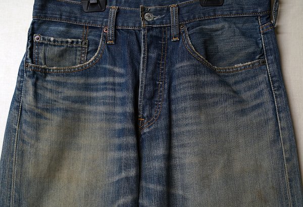 穿き込まれた事により、良い具合のヒゲ色・クラッシュが出た501です!