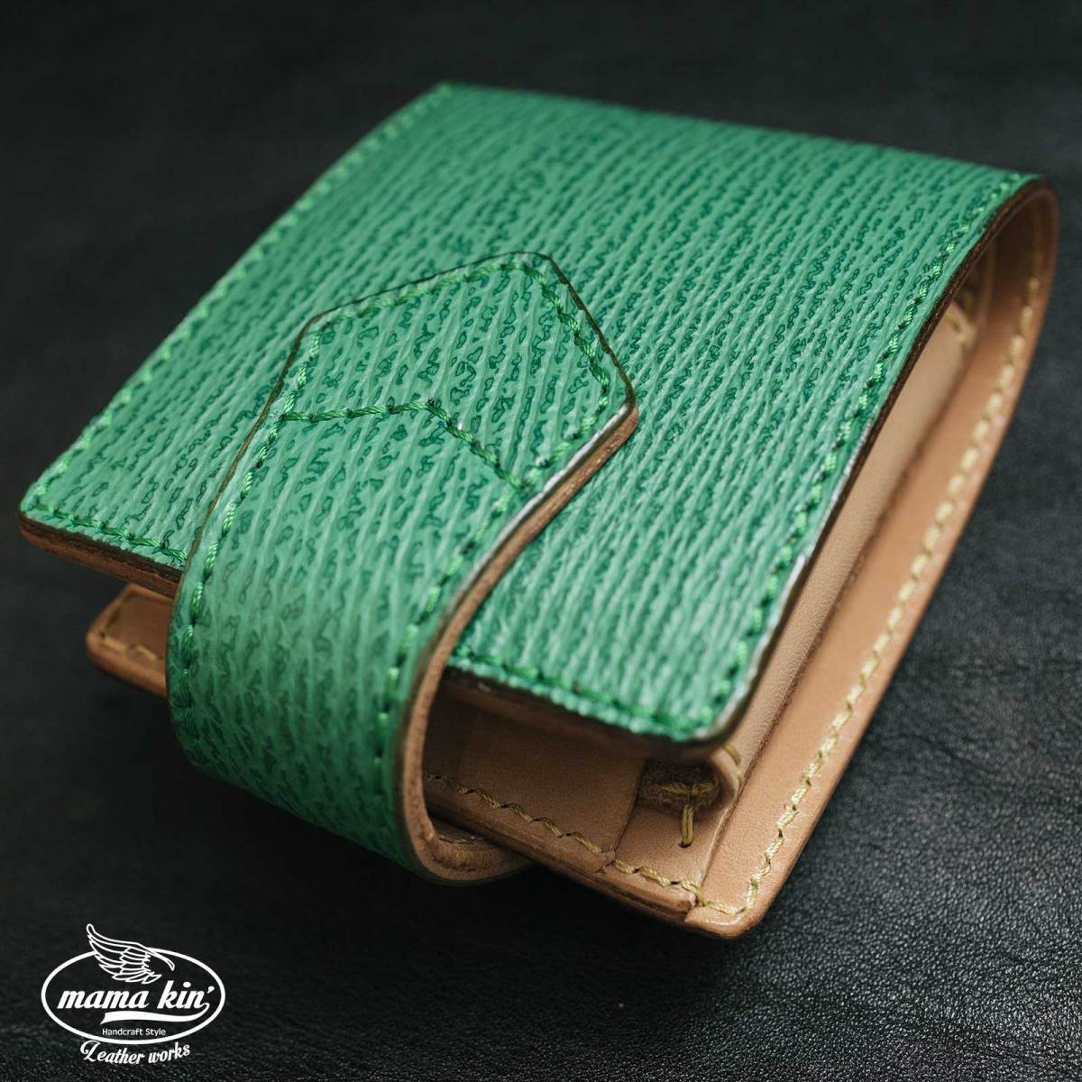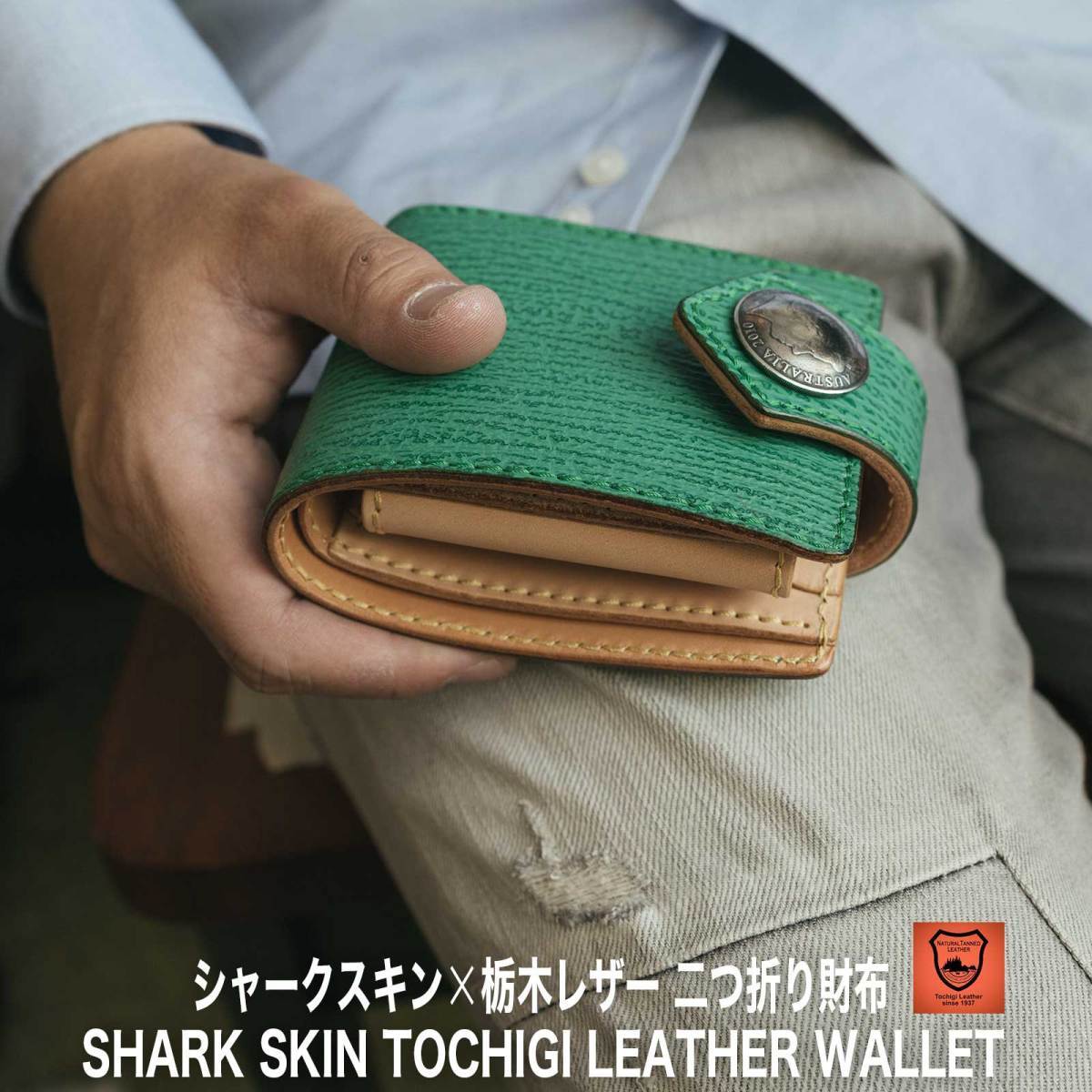 気仙沼産サメ革を使用しております。アトリエシャーク様とのコラボ商品です。