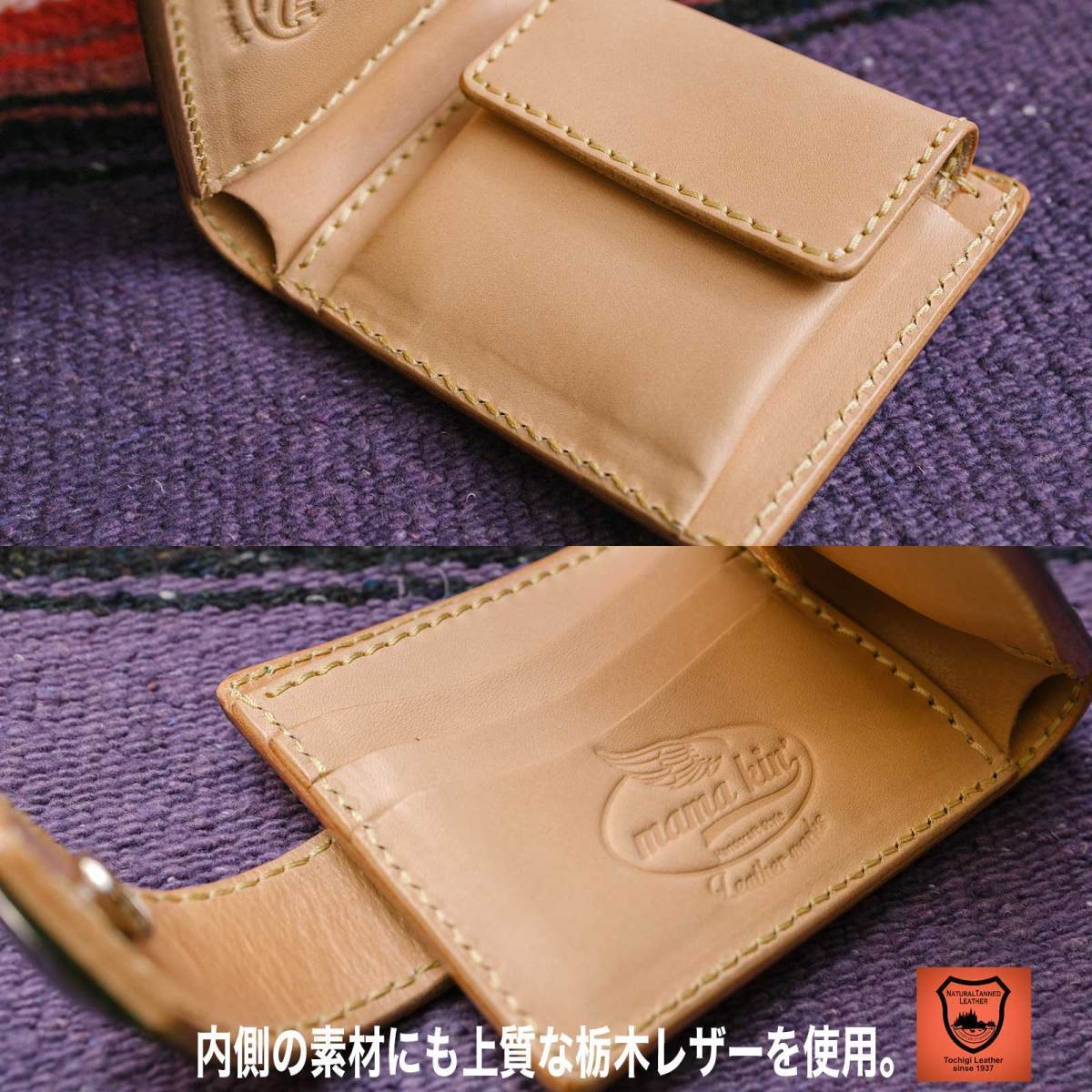 内側の素材にも栃木レザーを使用。