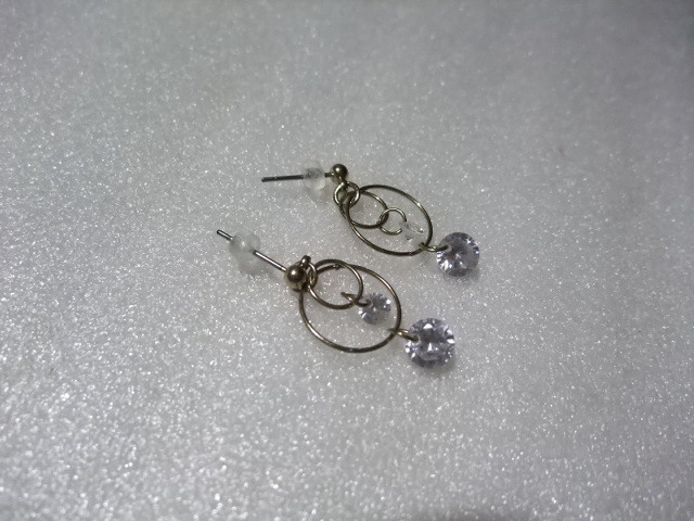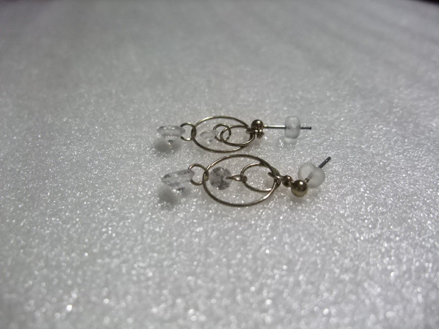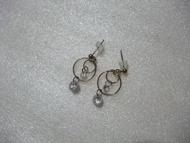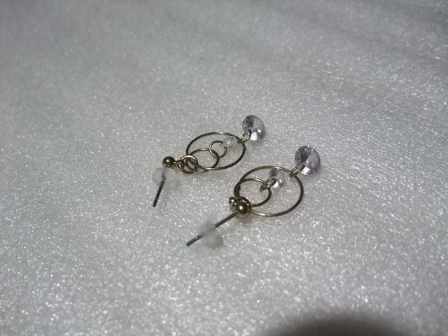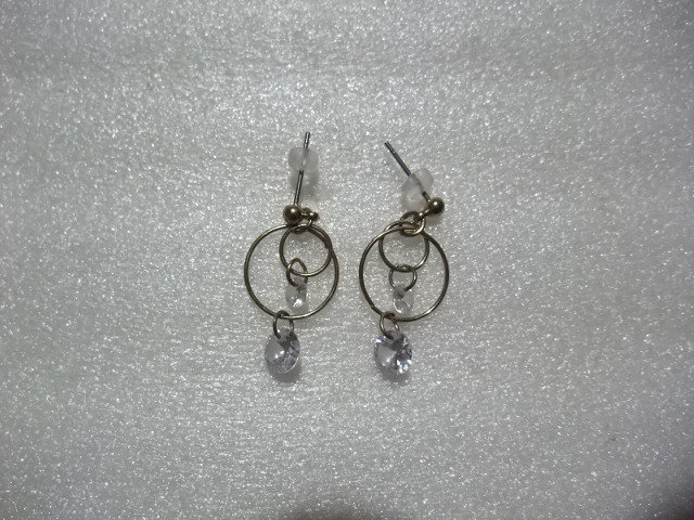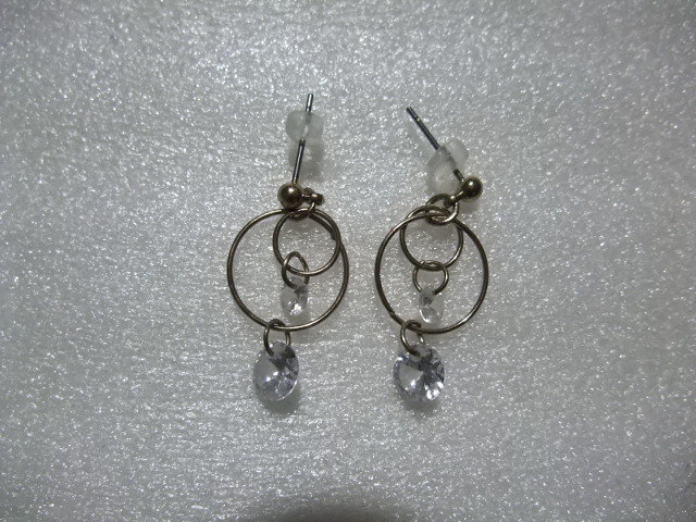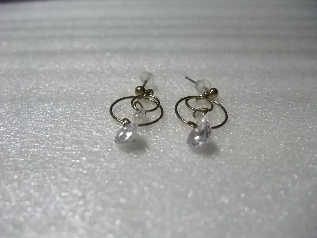 ダイヤモンド風ラインストーンピアス ダブルフープ&ビーズ 揺れてキラキラ