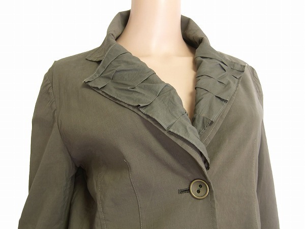 | 商品詳細 | NO- 6010 ★【ブランド】 *Leilian (株)レリアン 日本製 ★【特徴】 *レリアン最高峰シルバータグ。 リネン混の伸びやかなストレッチ素材、ふっくら変形衿がお洒落なミリタリ調ジャケットです。 衿×袖口はお洒落な立体ヒダ加工が施され個性的な印象に仕上がっています。 全体的に古着特有の擦れ感×ミリタリ調デザインが、こなれ感を感じる素敵なお品です。 春夏の羽織りものとしてもオススメです。 ・肩パット×・裏地×・伸縮性○・ポケット○ ・季節性 春夏秋向け ※状態につきましては当社基準のランク表も合わせてご参考下さい。 | ||||||||||