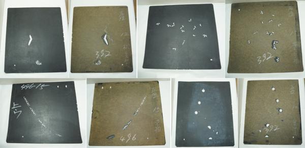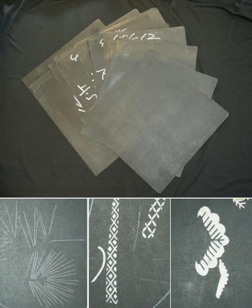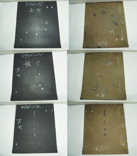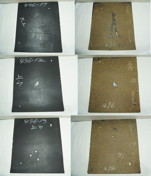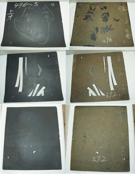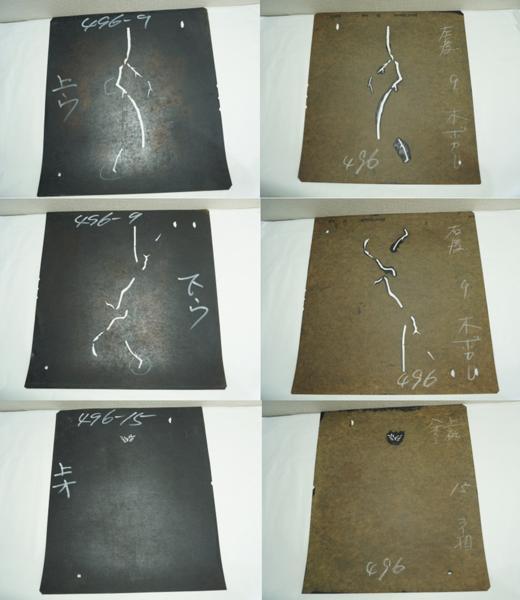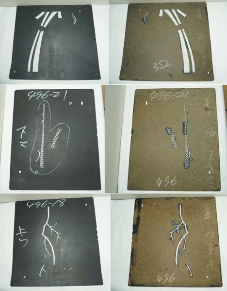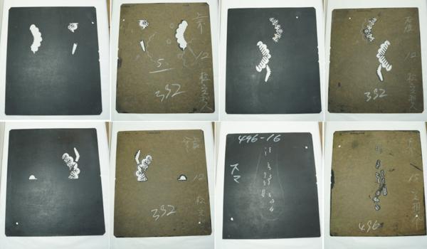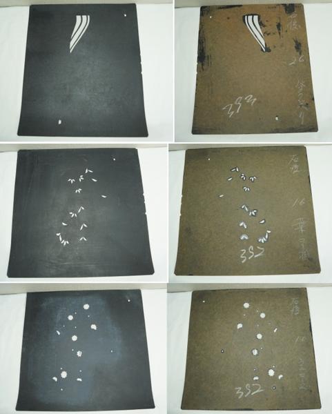 素材:紙。一番小さいサイズ:横45cm×縦38cm。一番大きいサイズ:横49cm×縦45.5cm。全部で26枚あります。