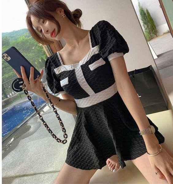 トレンド の バイピング デザイン が 可愛い ワンピース タイプの 水着 です。