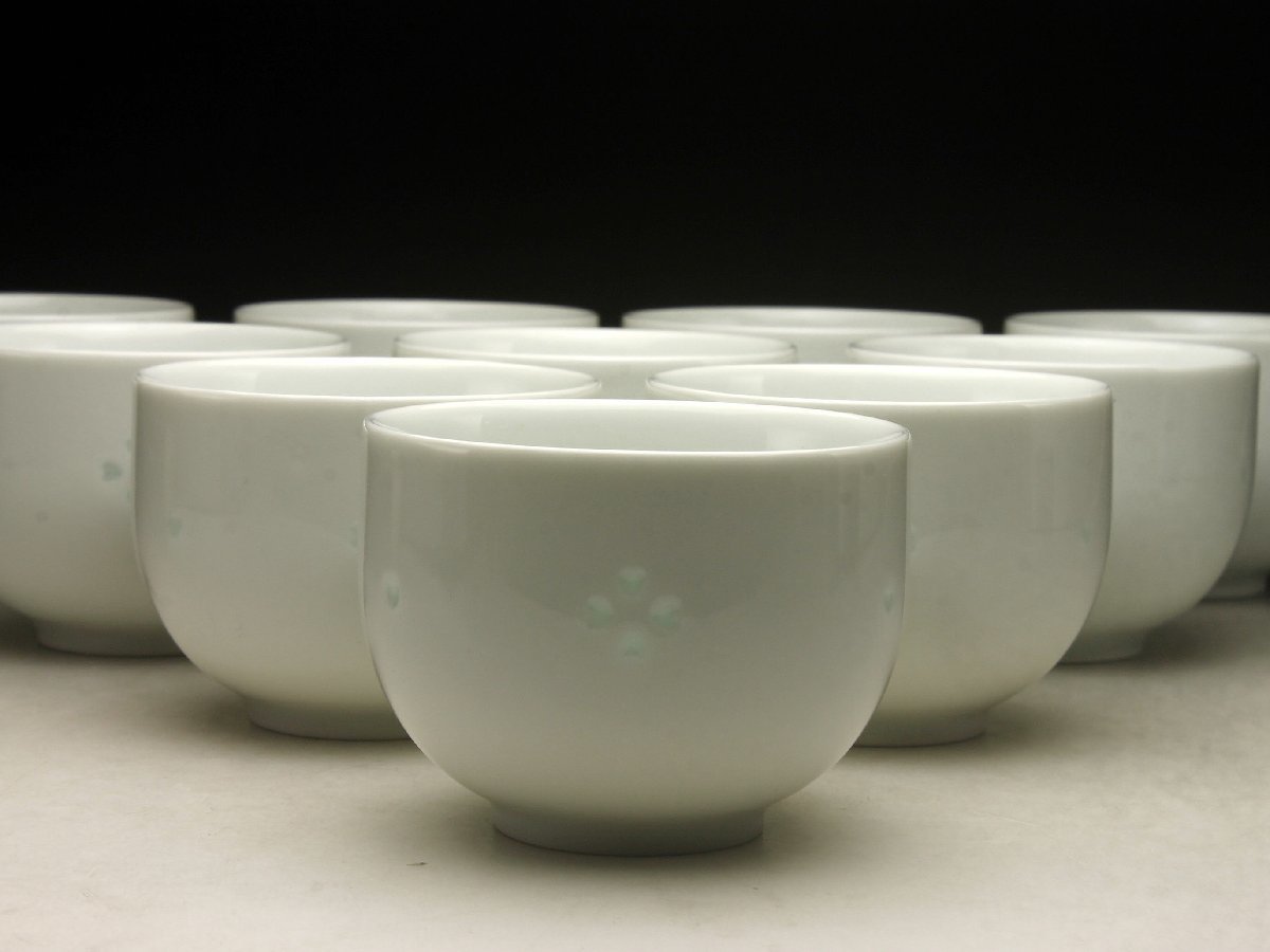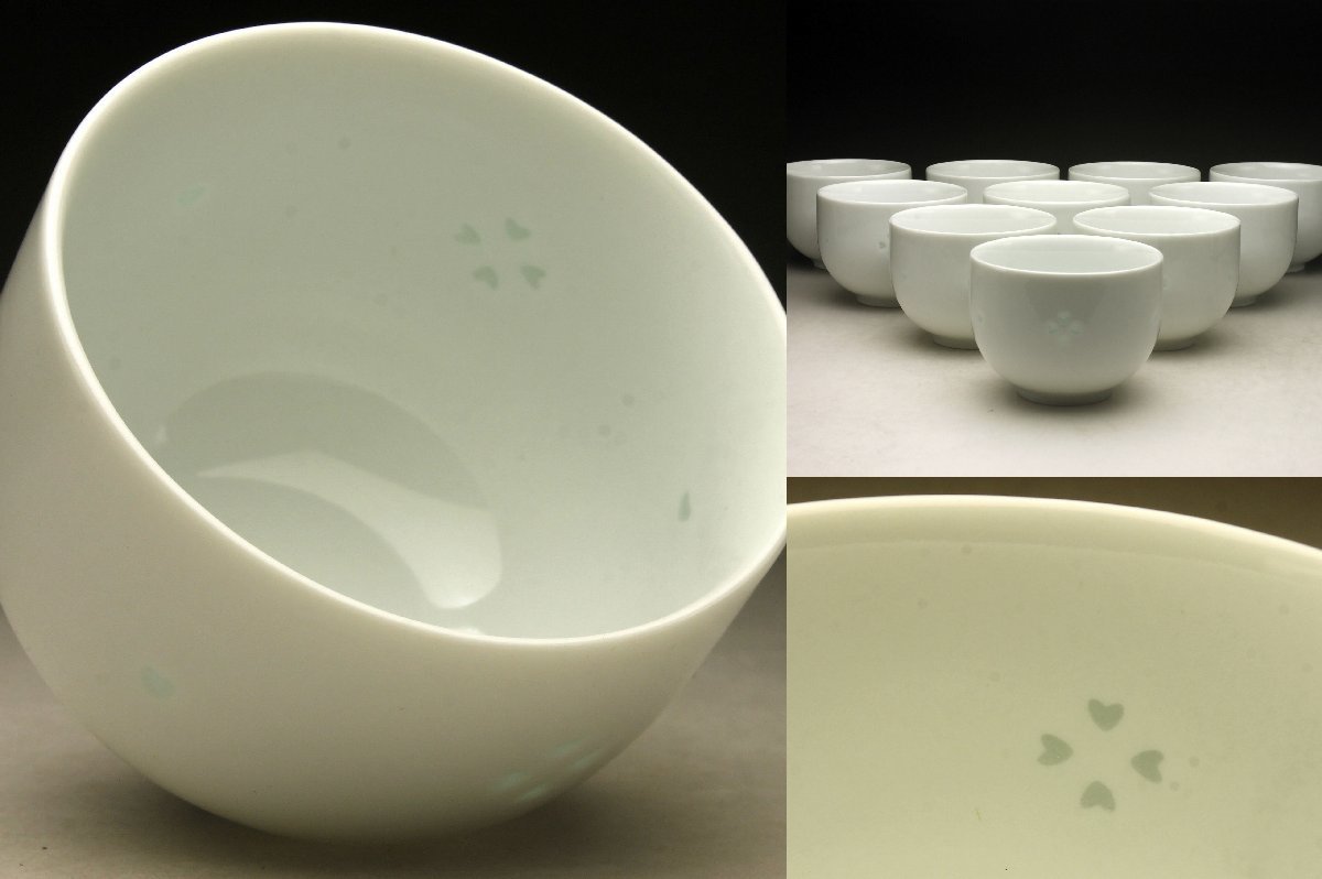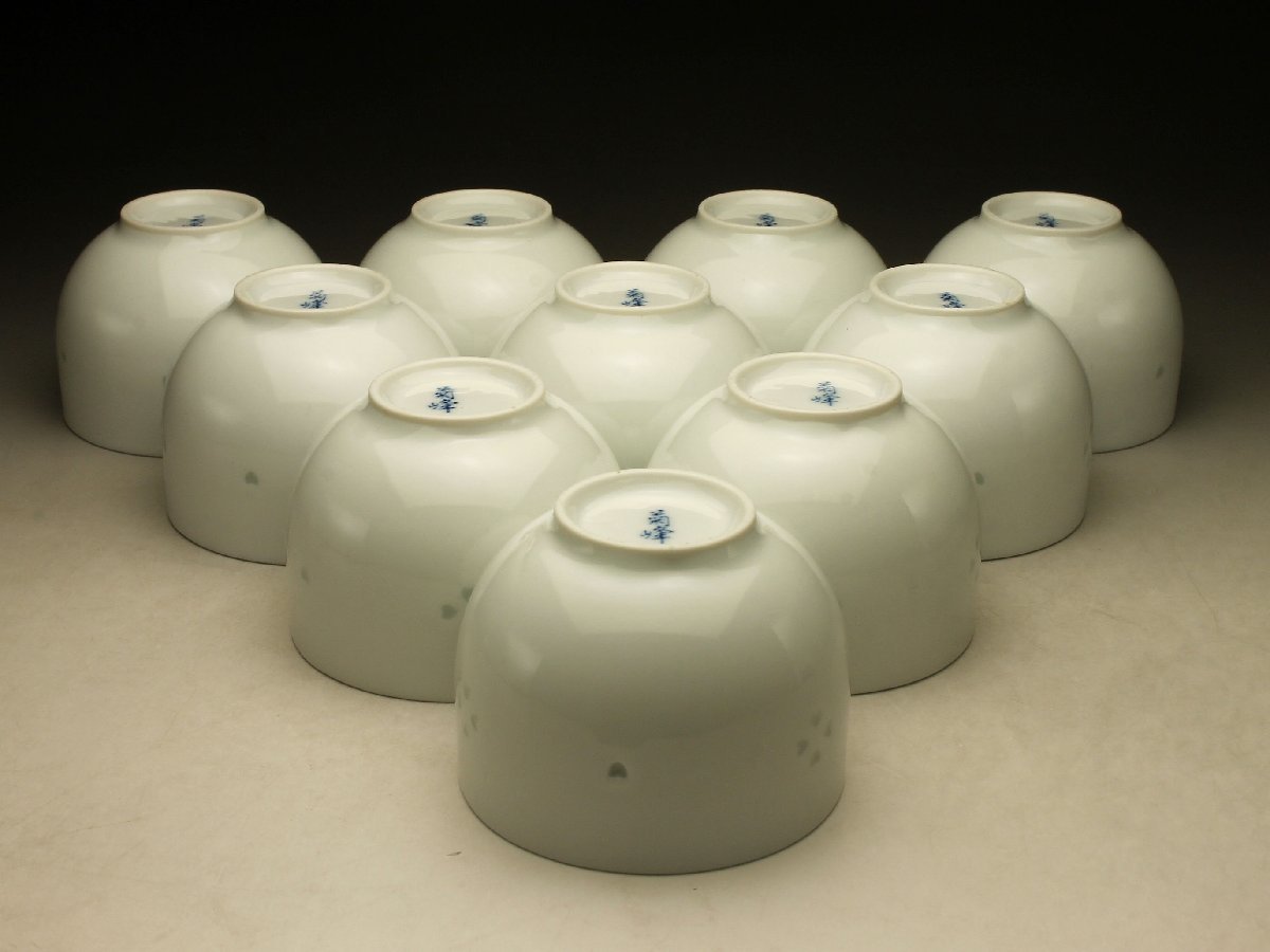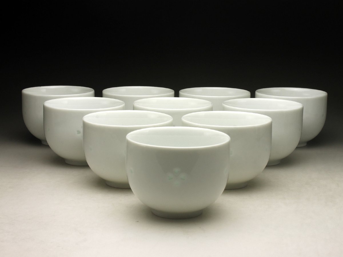 【余韻】 有田焼 菊峰造 白磁 ホタル 蛍 湯呑揃(十客)★美品 煎茶道具 煎茶湯呑<同梱可>