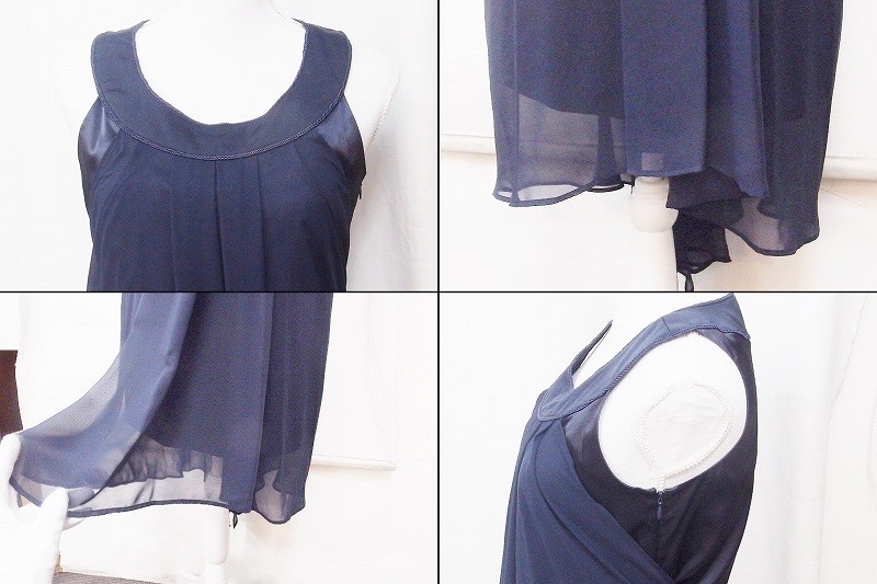 COMME CA ISM コムサイズム ノースリーブ フレアワンピース L ネイビー