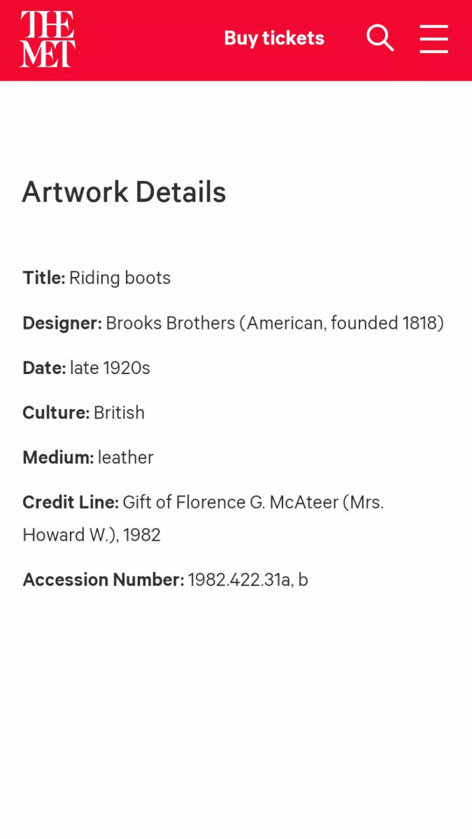 ニューヨークのメトロポリタンミュージアム(THE MET)に展示されていたブーツと全く同じ