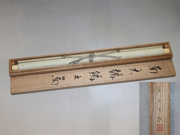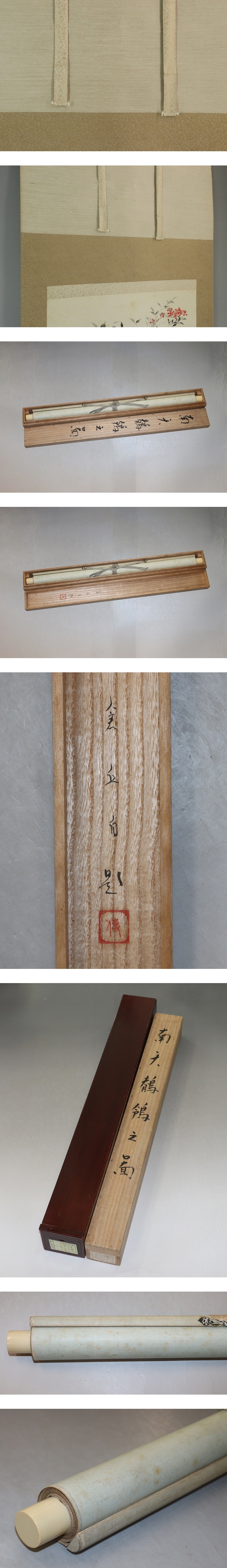 山本倉丘 やまもと-そうきゅう(1893-1993) 大正-平成時代の日本画家。 明治26年10月12日生まれ。山元春挙,堂本印象に師事。 帝展,日展を中心に活躍。昭和41年「たそがれ」で芸術院賞。 花鳥画などを現代的な感覚で描いた。 平成5年9月5日死去。99歳。高知県出身。 京都市立絵画専門学校(現京都市立芸大)卒。本名は伝三郎。 本紙は、染みがあります。 表装は、染み、汚れ、軽い皺があり、風帯の長さが違います。 【サイズ】 作品 横約51cm×縦約45cm 表装 横約64cm×縦約138cm |