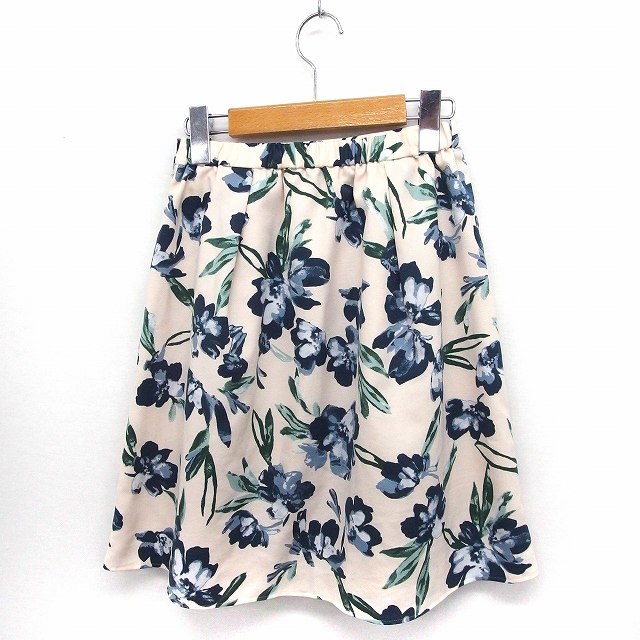 ジュエルチェンジズ Jewel Changes アローズ スカート 花柄 フレア ひざ丈 ゴム 36 ホワイト 白 ネイビー 紺 /FT35 レディース