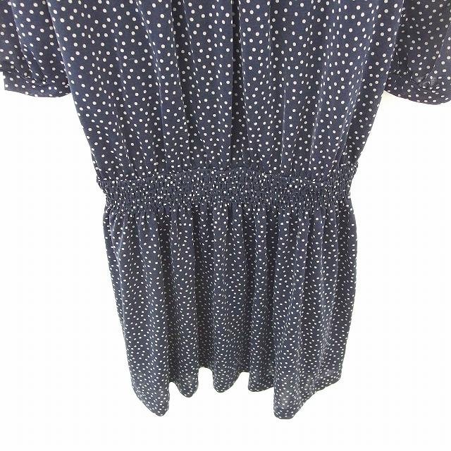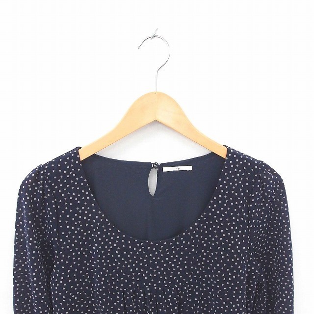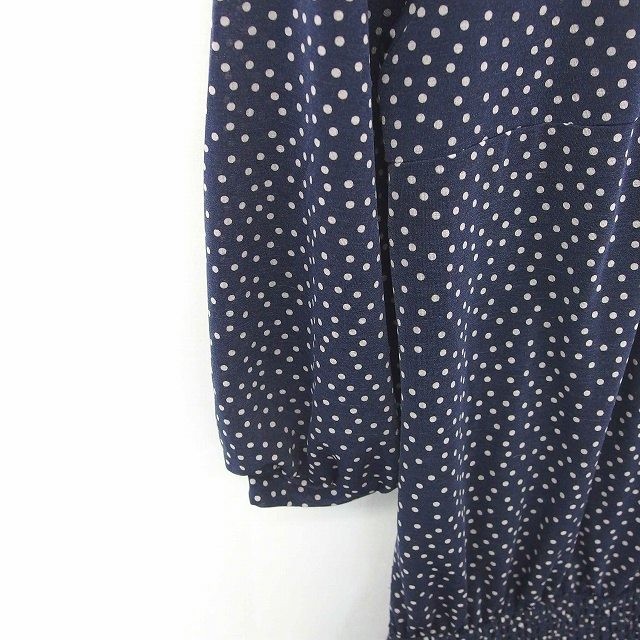 シップス SHIPS ワンピース 膝下丈 ドット フレア プルオーバー 七分袖 紺 ネイビー /TT4 レディース