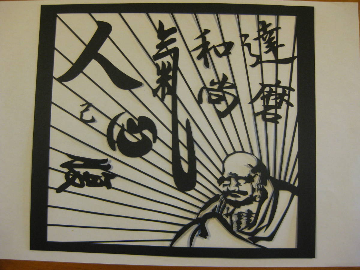 切り絵 達磨和尚 気は長く心は丸く腹立てず口慎めば命長かれ