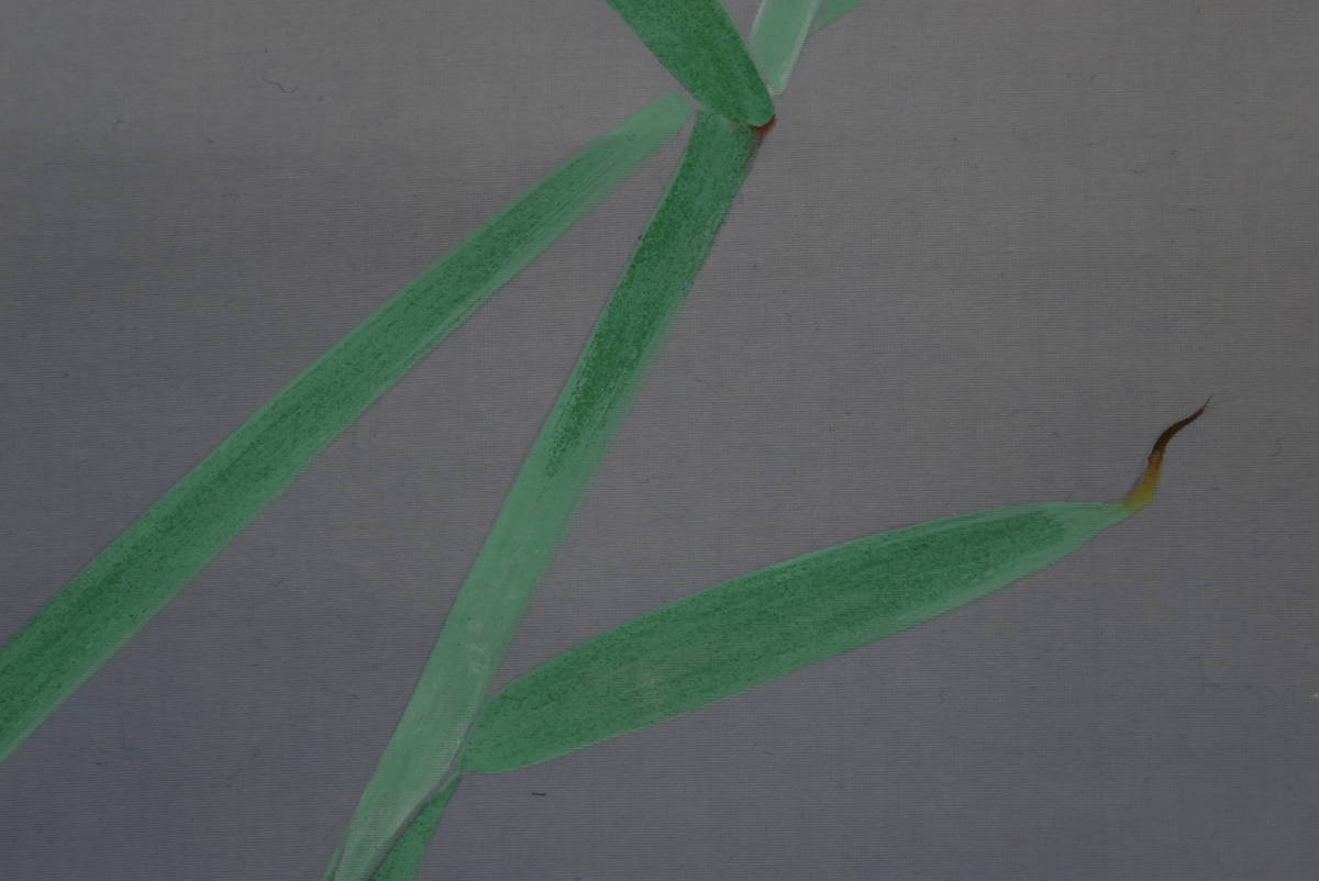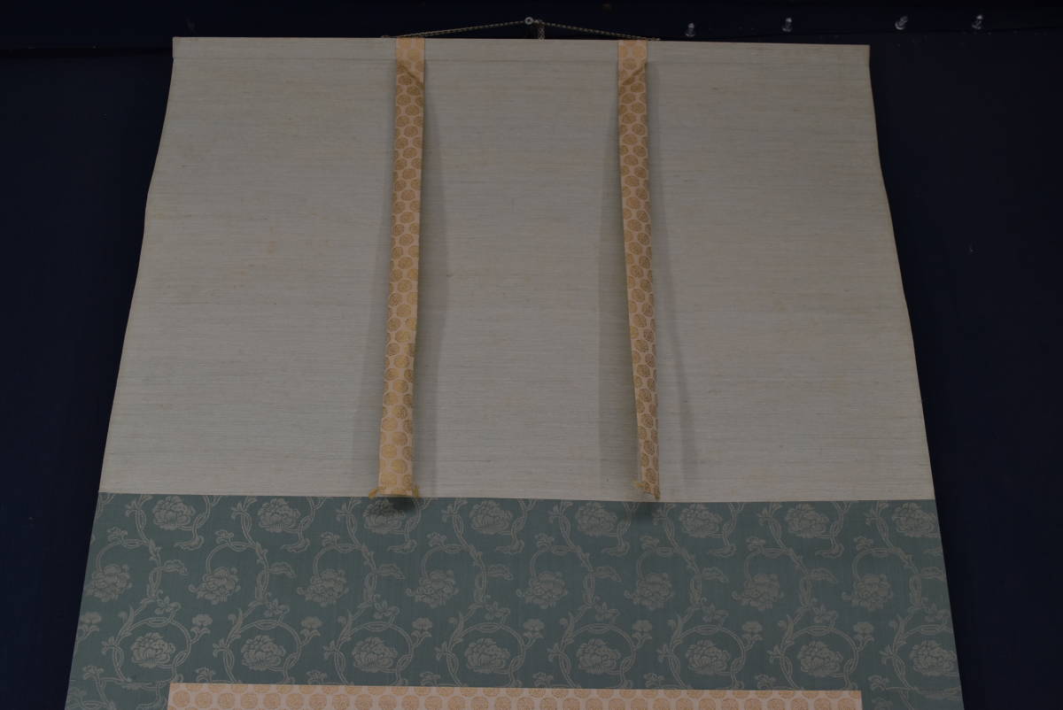 【作品状態】 本紙は絹本肉筆です。本紙は概ね良好です。表装は絹表装で、天地に薄汚れ、多少の巻シワあります。
