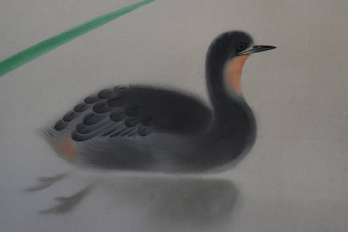 真作/梅村素渓/池畔図/芦に水禽図/横物/水鳥図//掛軸☆宝船☆AA-270