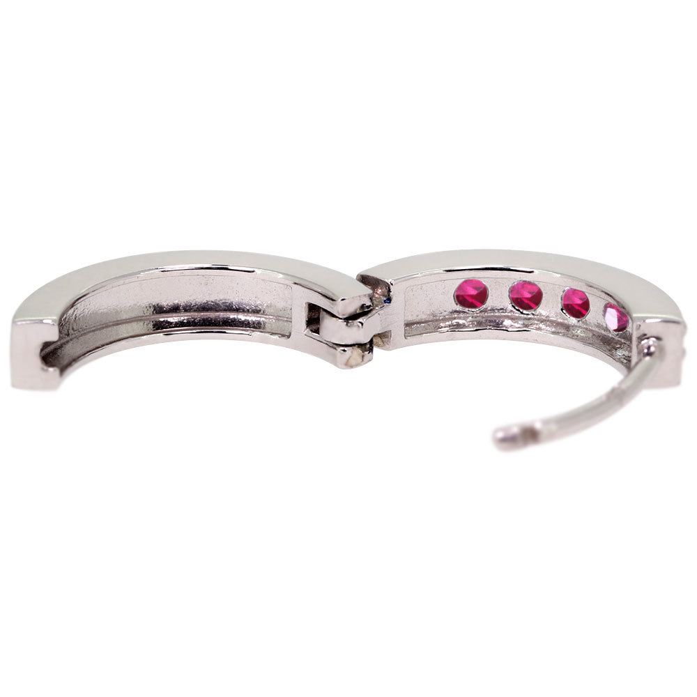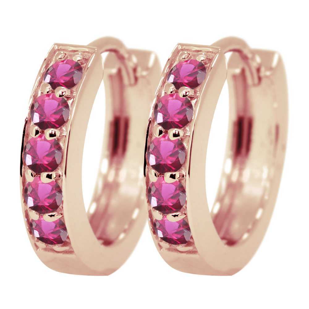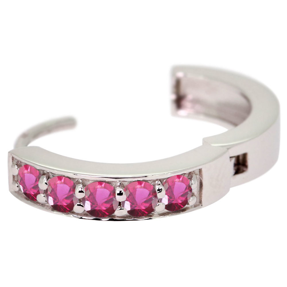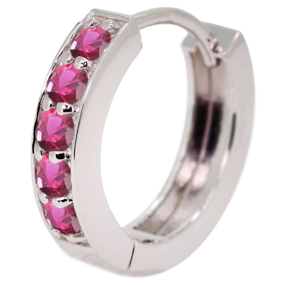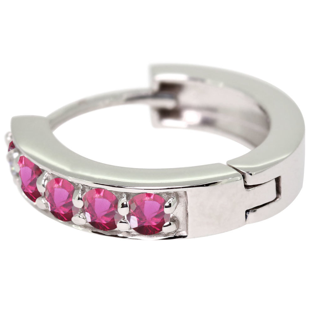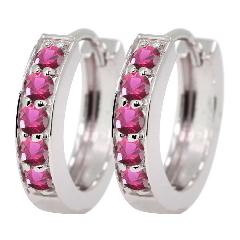 7月誕生石ルビーを使用した18金製の、ハーフエタニティタイプのレディースフープピアスです。