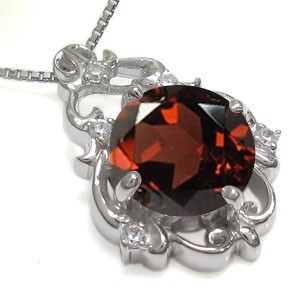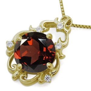 1月誕生石大粒ガーネットを一粒使用した、18金製のアラベスク(唐草)デザインネックレスです。