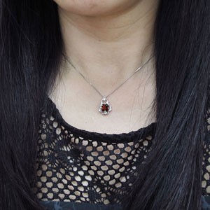 ■石名:主石 ガーネット(約 8.0mm/天然石使用)脇石 ダイヤモンド(5石合計で約 0.05ct/天然石使用)
