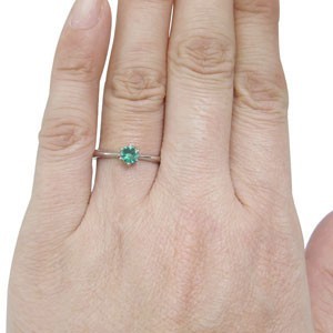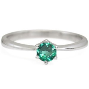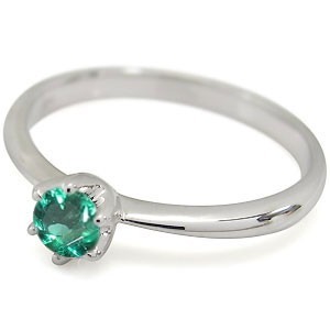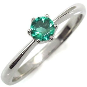 5月誕生石エメラルドを一粒使用した、シンプルデザインのプラチナ製リング(指輪)です。