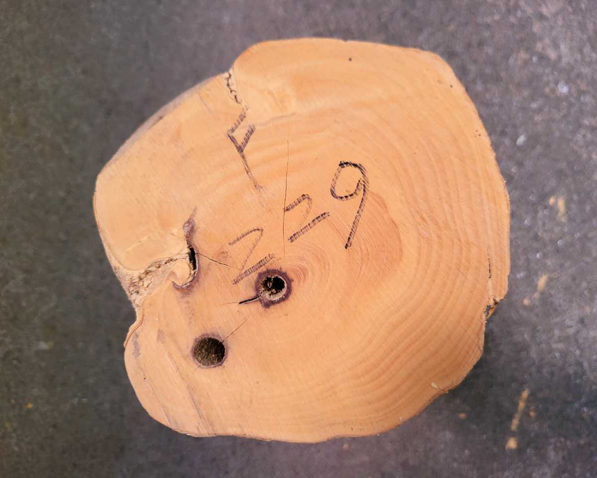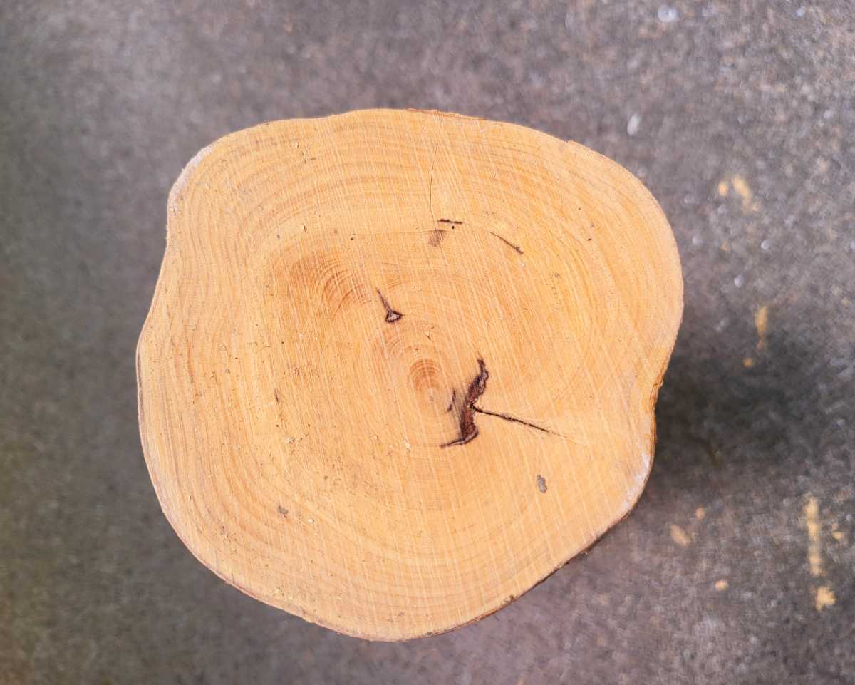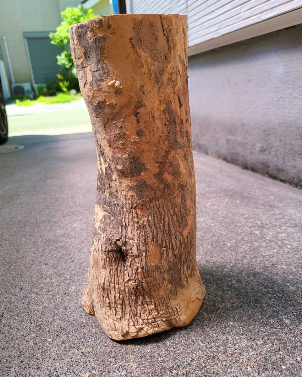 伐採したままの状態です。乾燥していますので、購入すると、直ぐ使える良い素材です。彫刻、木口木版画、印章材、飾り物、将棋駒何でも出来ます。