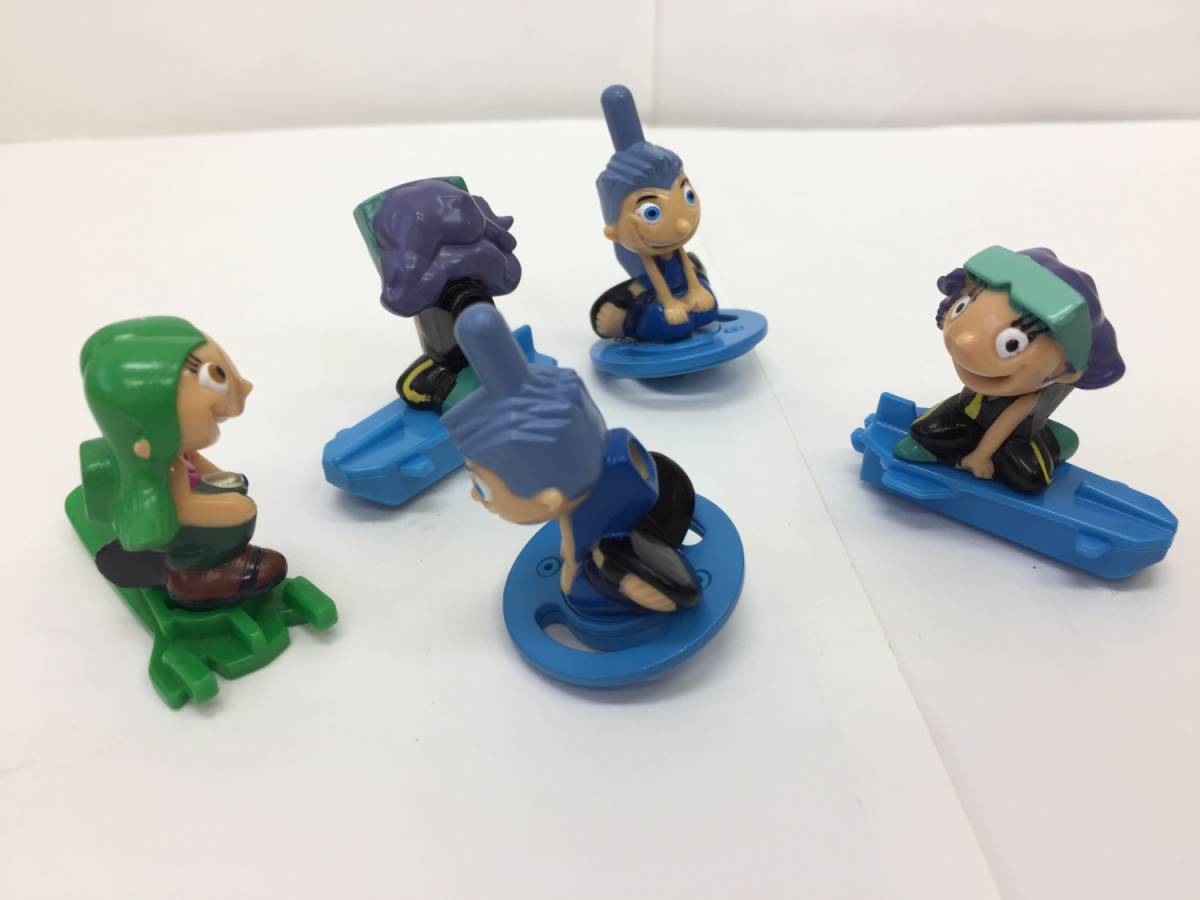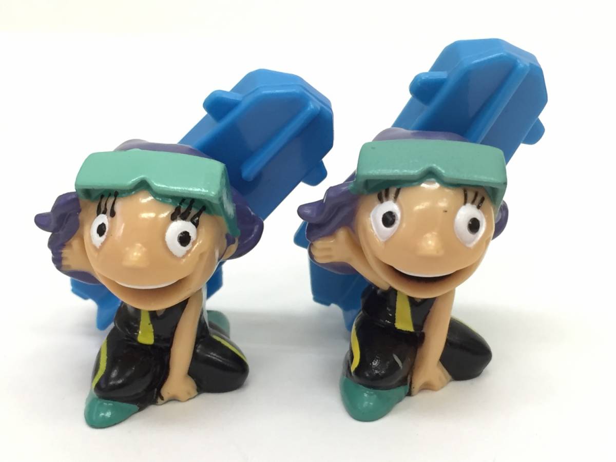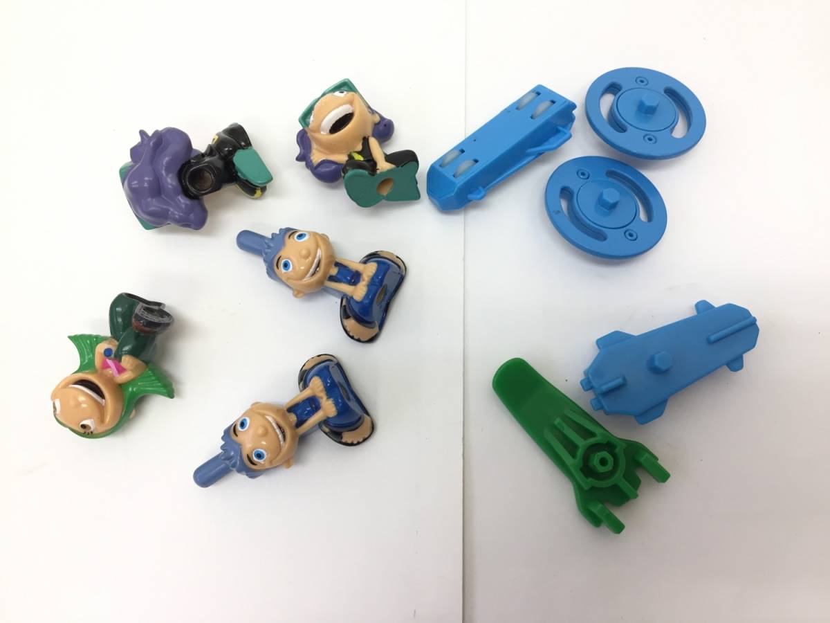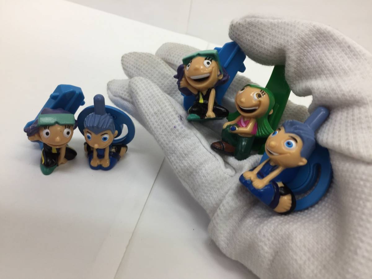 ◎サイズ 5個セットで重量:約39g ※多少誤差は生じると思います。 -------------- ◎状態 中古。 画像1に写っているものが全てです。 それ以外は付属しません。 個装されておらず、 おもちゃ箱の中に無造作に 入っていた物を集めました。 この玩具の正体が分からないので、 インターネットで調べました。 おそらくですが、キンダーサプライズという 食玩の中に入っていた玩具だと 思われます。 間違っていたら申し訳ありません。 全体的に傷、剥げ、汚れなど 経年の影響が多少付いています。 説明書が無いので、あくまで 当方の推測ですが、画像8のように スケボーなどに人形を乗せることも 出来ると思います。(人形に何かを はめ込む穴が足元にも開いていました) 上記の通り、美品ではありません。 保管方法も他の玩具と一緒に 詰め込まれていたので、 全体的に汚れや擦り傷などがあります。 画像10のように手のひらに収まるような 可愛いサイズ感です。 -------------- 発送時は個装しません。 1つのビニール袋に商品をまとめて 詰め、梱包します。ご了承ください。
