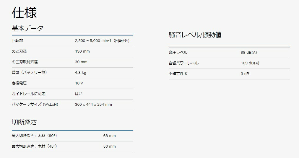 ・新しいBITURBO Brushlessテクノロジーにより、1,800Wのコード式丸のこに匹敵する切断性能を実現
