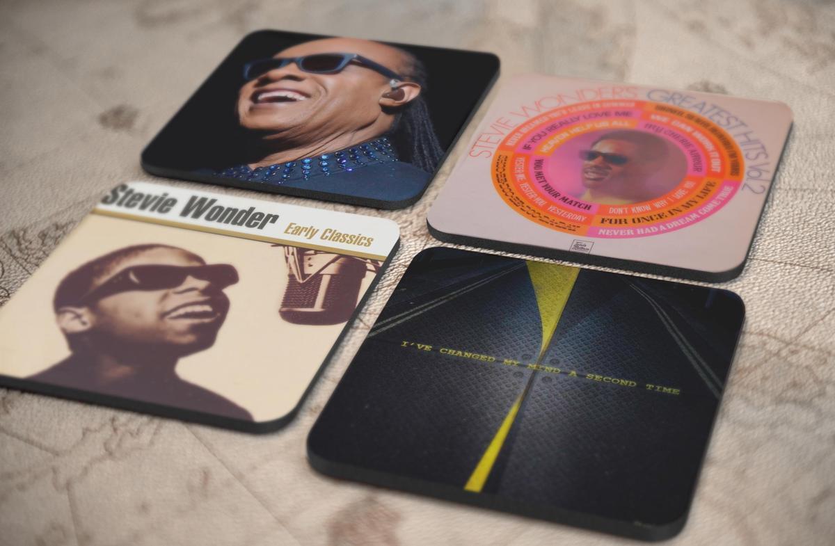 《スティーヴィー・ワンダー - Stevie Wonder》オリジナル・アルバム ジャケット デザイン コルク製 コースター4個セット-41-40(11)
