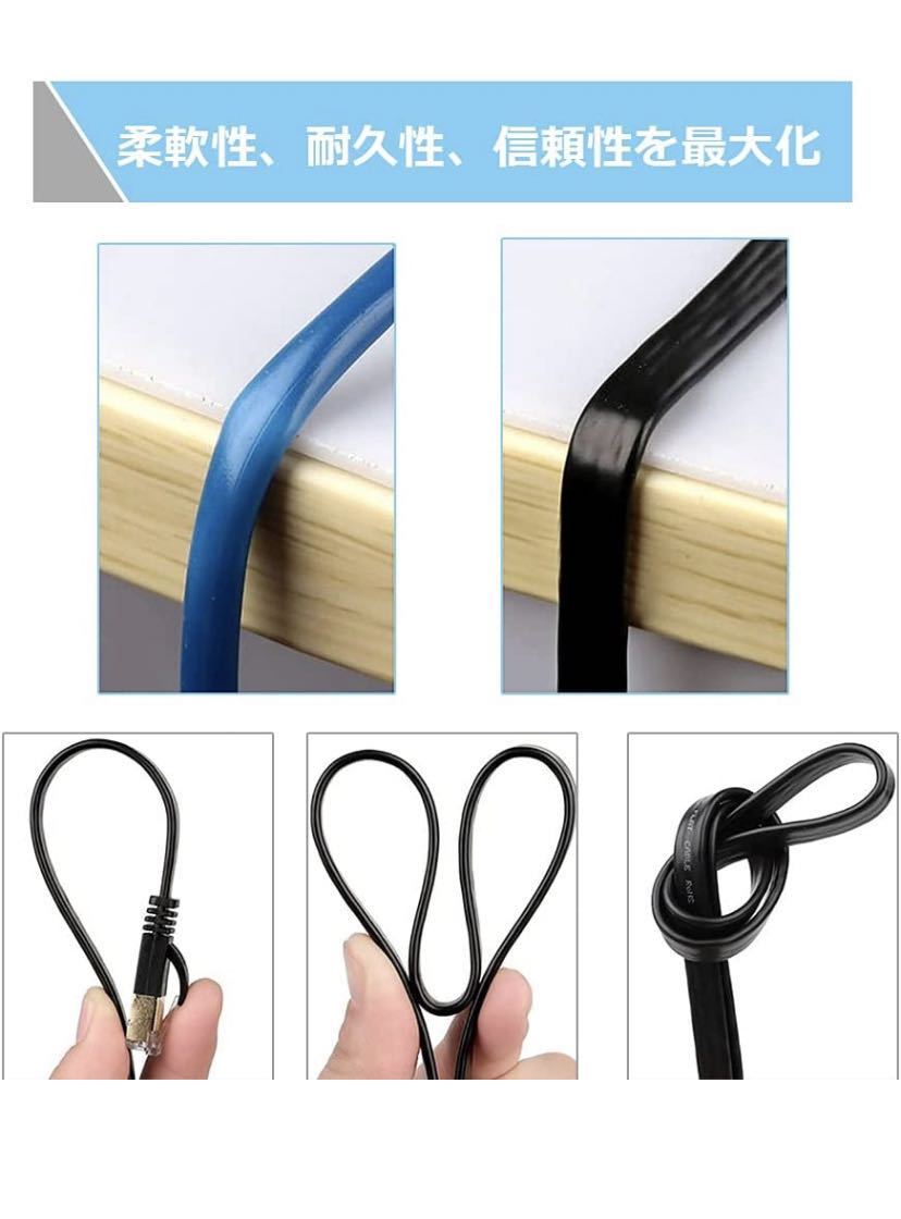【簡単な配線】厚さ2.4mmのフラットネットワークコードはもつれを防ぎ、スペースも節約します。また、同梱されたケーブルクリップとストランプにより、ケーブルをカーペット、ラグ、ドアの下、壁に沿って簡単に配線できる同時に、お部屋のインテリアにも邪魔しなく、美観性も保っています