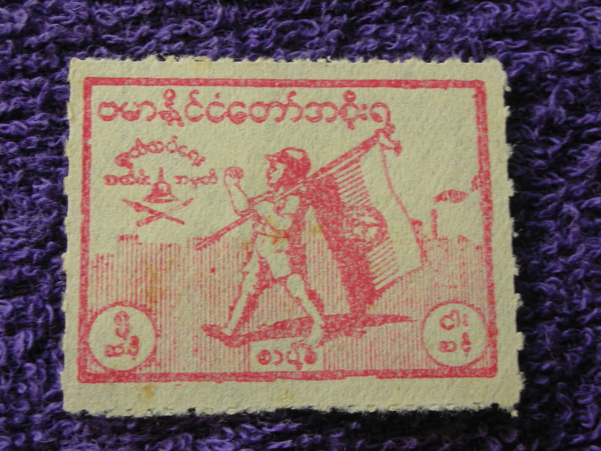 南方占領 ビルマ  独立記念 国旗と少年 5C 目打ち(横)×ルーレット(縦)2B57 型価16千円