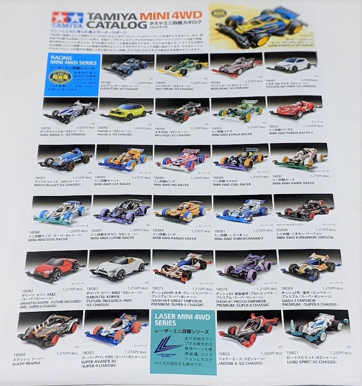 タミヤ ミニ四駆ラインアップカタログ 2022年5月版です。どうでしょう? |