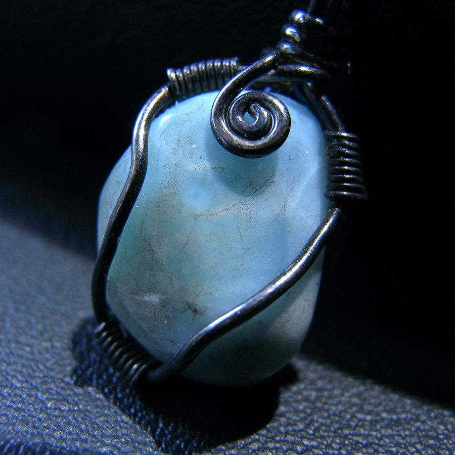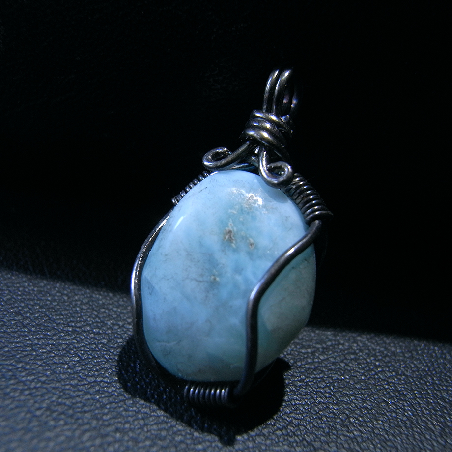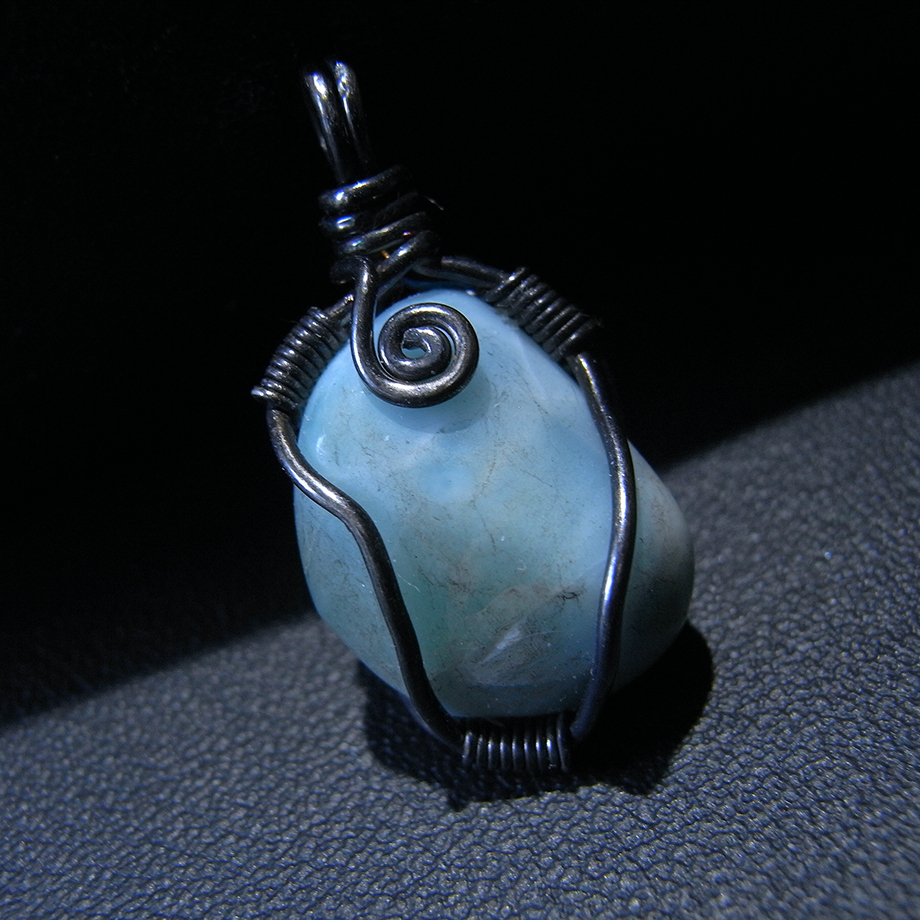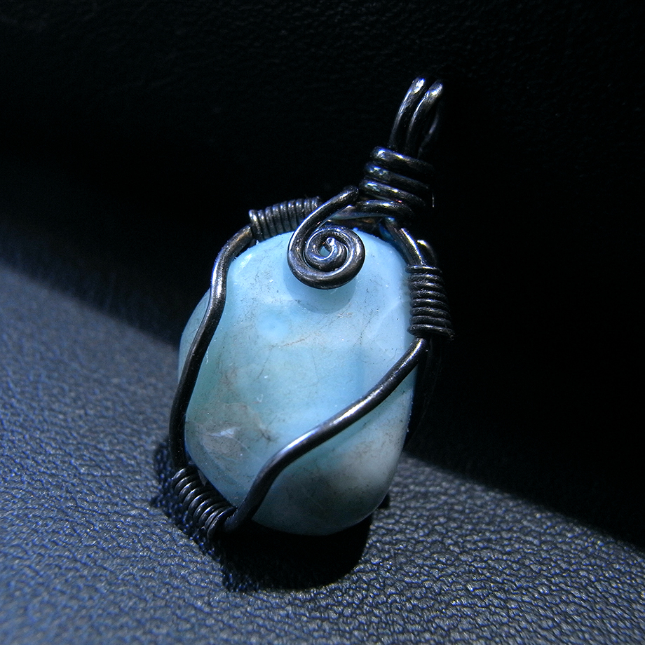 ラリマーに、ワイヤーアートを施したペンダントトップです。