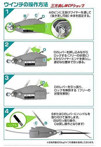 ●ワイヤーロープを本体に巻き取らないため色々な方向に引っ張ることができ様々な場所で使えます