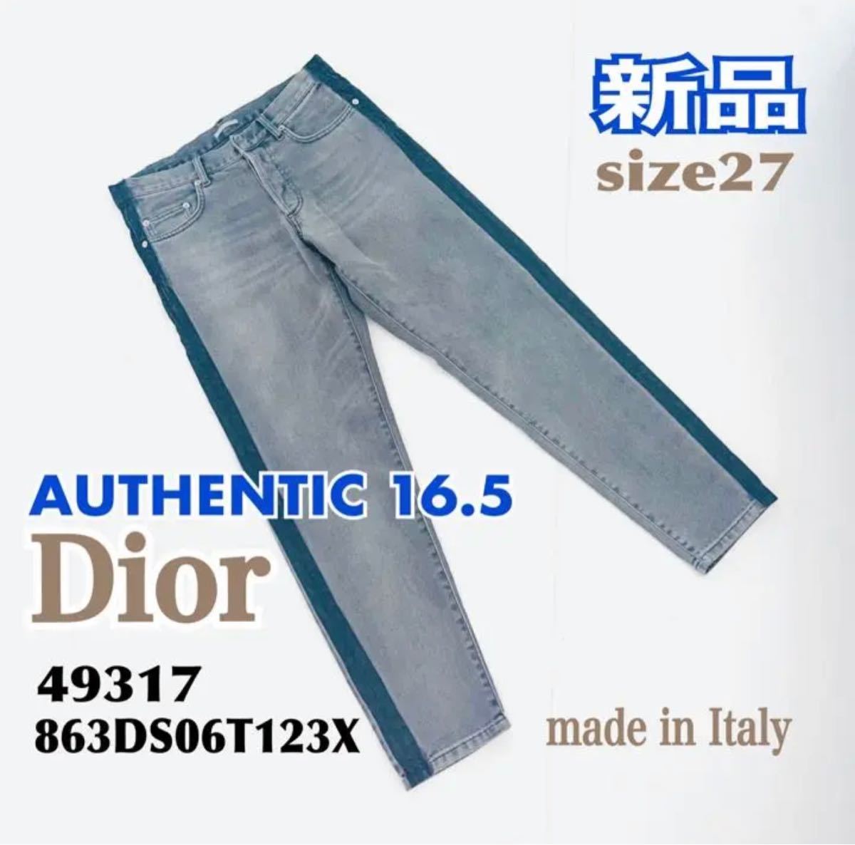 ■商品説明 Dior「AUTHENTIC 16.5」のサイドラインパンツ。 全体にグレー濃淡でまとめられたクールな1本。真っ黒よりもモードでオシャレに決まります。季節を問わず1年中お召し頂け、どんなトップスにも合わせやすいと思います。 高級感のある生地は、よく熟れてとてもしなやか。キメ細やかで、なめらかな優しい肌触りです。 腰回りは程よいゆとりがあり、ストリートに似合う若々しいシルエットになっています。エレステン2%入りですから程よくストレッチがあり、履き心地も満点です。 黒のサイドラインはテープでなく黒染めのようです。ごわつきもなく、履き込んでも引きつれや解れを気にすることなく永く愛用頂けると思います。 全てのハトメ&ボタン&ホックは、ツヤありのシルバー色でブランドロゴ入り。隅々まで高級感があります。 バックポケットはダーツの入った凝ったデザインになっており、シンプルかつクールなバックアクセントになっています。 バック右上には、サイドラインと同じ黒でアクセント。 黒合皮パッチには、シルバーでDiorロゴあり。 裾はロールアップして履くのもオススメです。夏はロールアップで足首見せ、冬はブーツとの相性も抜群です。 都内直営店にて購入した正規品です。一切のトラブルなくとても綺麗な状態です。 必要でしたらDiorのショッパー(白の紙袋)お付けしますのでお知らせ下さいませ。 ■品番 49317 863 DS06 T123X ■表示サイズ 27 ■平置き実寸 ウエスト 80㎝ 股上 23㎝ 股下 74㎝ わたり(太もも上部付け根部分の横幅) 28.5㎝×2 裾幅 15㎝×2 ■素材 コットン98% エレステン2% #ブランドパンツ#ディオール#ディオールオム#ディオールメンズ#メンズ#メンズパンツ#デニム#デニムパンツ#ストレート#ストレートパンツ#グレー#サイドライン#サイドラインパンツ#27#ストレッチ#スキニー#ストリート#DIOR#Dior#イタリア#イタリア製#正規品#送料込