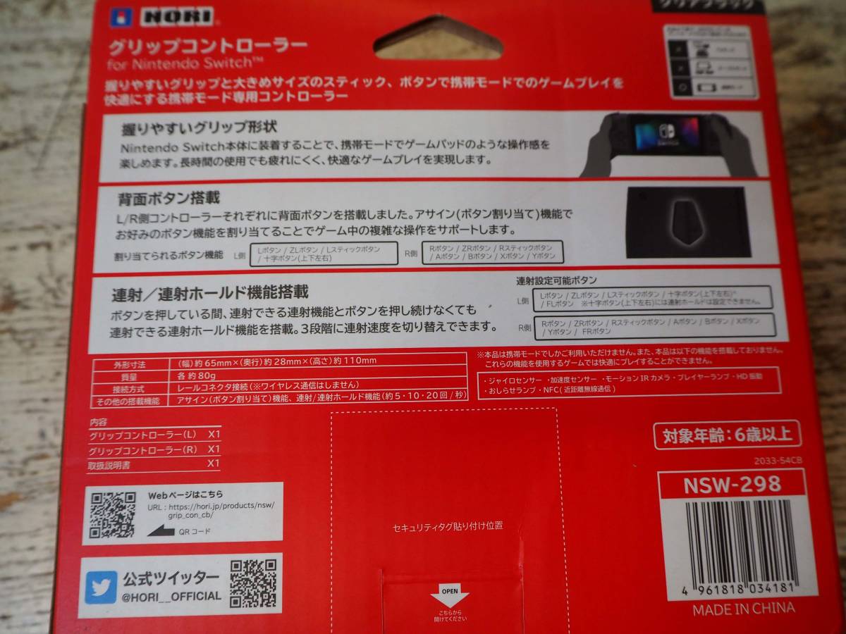 ◆HORI グリップコントローラー for Nintendo Switch NSW-298 クリアブラック 元箱あり◆