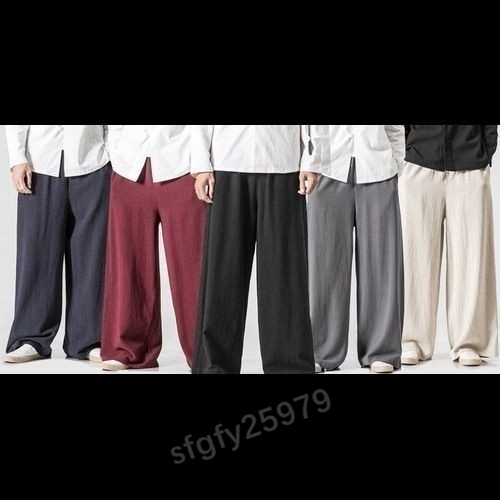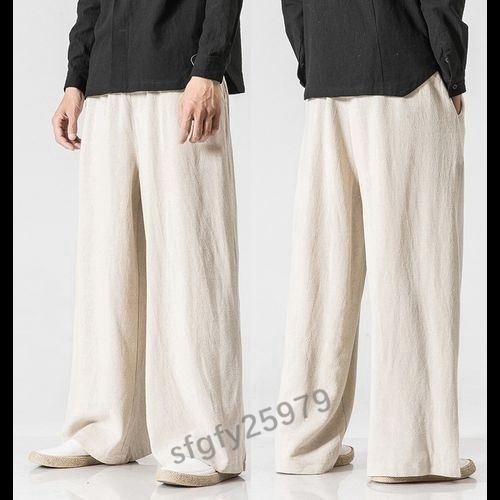 D842☆新品 5色!サルエルパンツ メンズ リネンパンツ 春 ワイドパンツ ガチョウパンツ カジュアルパンツ リラックス おしゃれ M-5XL