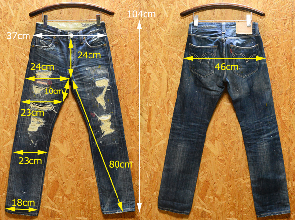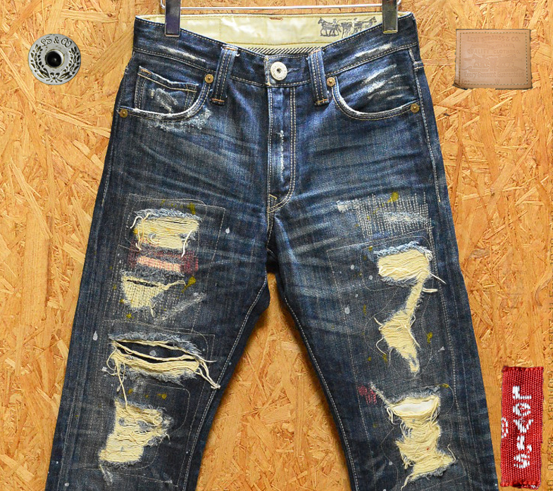 廃盤 W28 リーバイス LH505-0012 セミタイトストレート クラッシュ リペア ペンキ加工 / 股下80cm