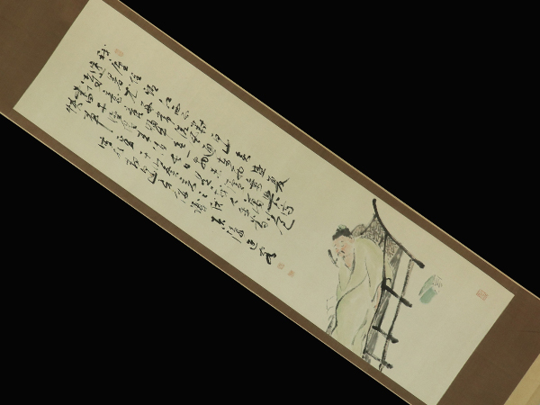 越智東豫 おち-とうよ(1893-1967) 愛媛県出身。田辺竹邦、小室翠雲に師事する。日本南画院会員。 本紙は、染み、汚れ、折れ、皺があります。 表装は、染み、汚れ、折れ、皺、虫食い、破れ、剥れ、くすみがあります。 【サイズ】 作品 横約34cm×縦約126cm 表装 横約39.5cm×縦約173cm |