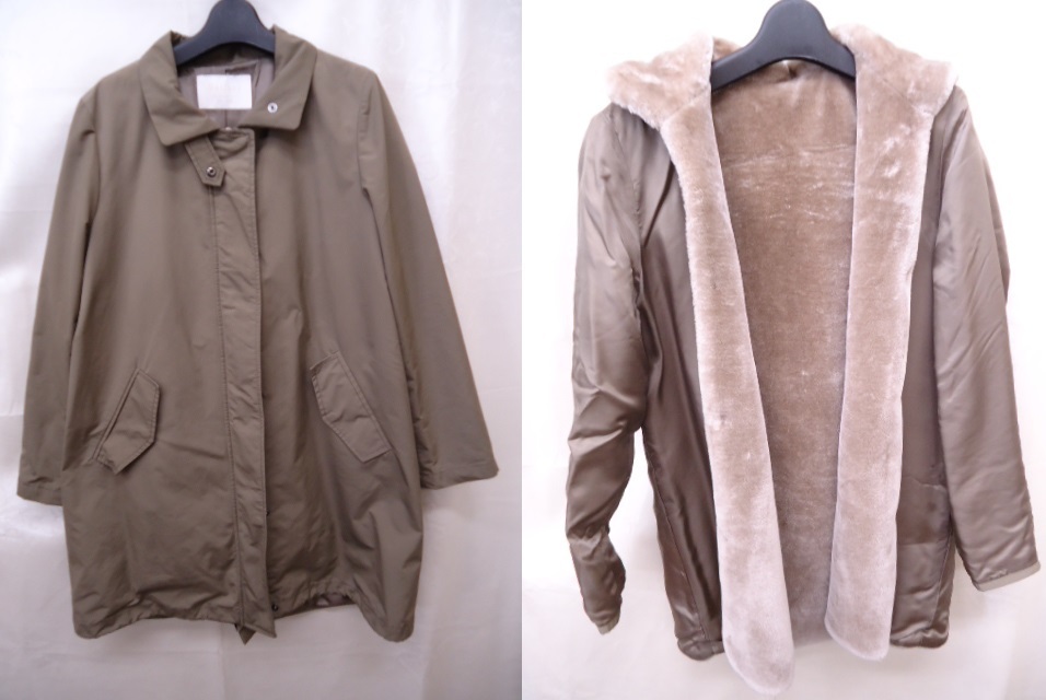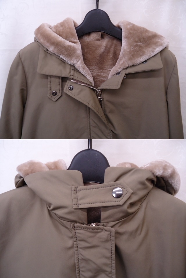 【KCM】jmc-turi-185-38★中古品★【Ballsey/ボールジィ】レディース フードボアインナー付き コート カーキ系 サイズ 38