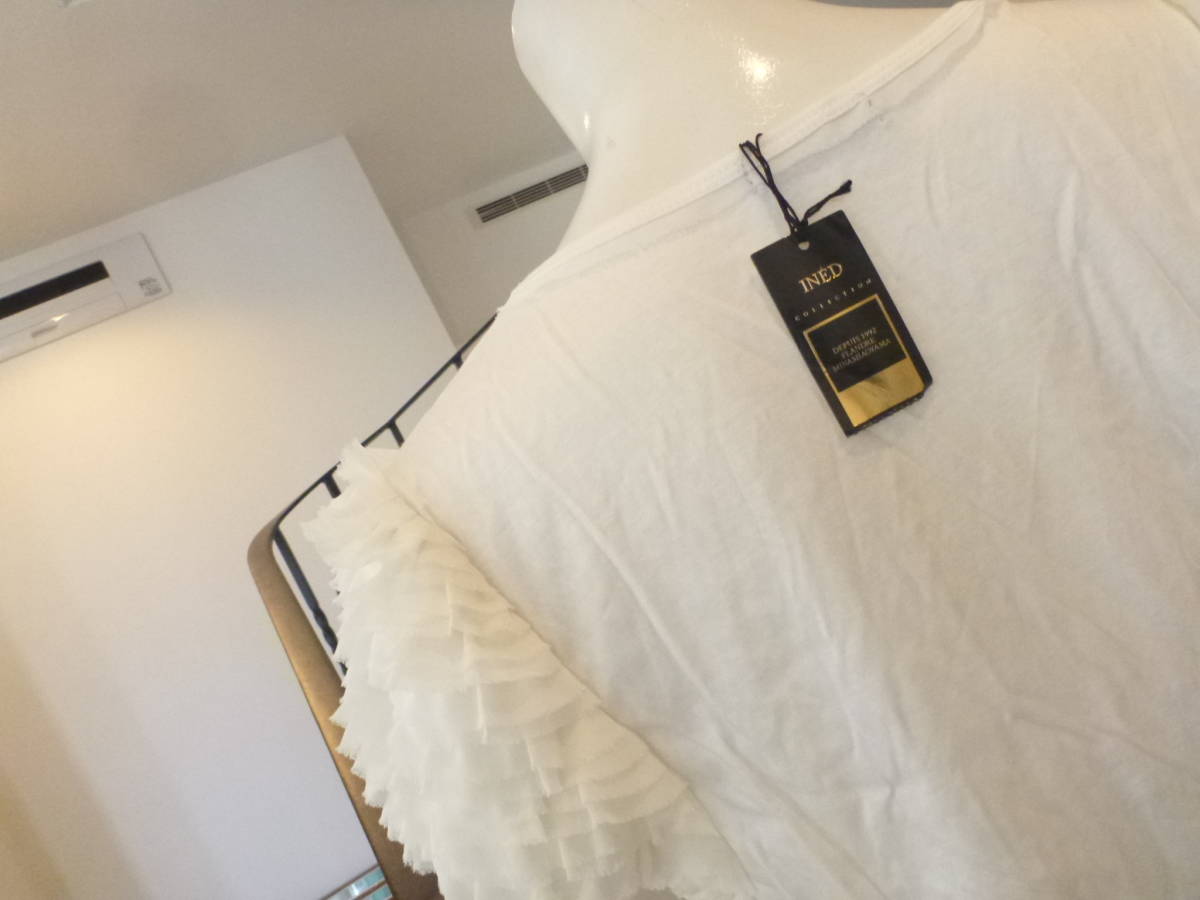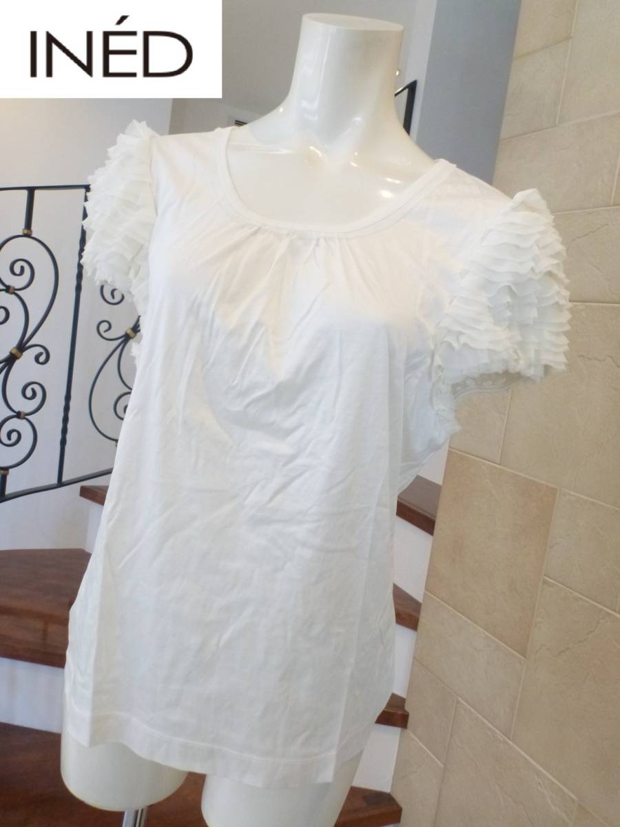 新品 INED イネド ★白 ホワイト系 肩フリル 半袖 カットソー 15 XL相当